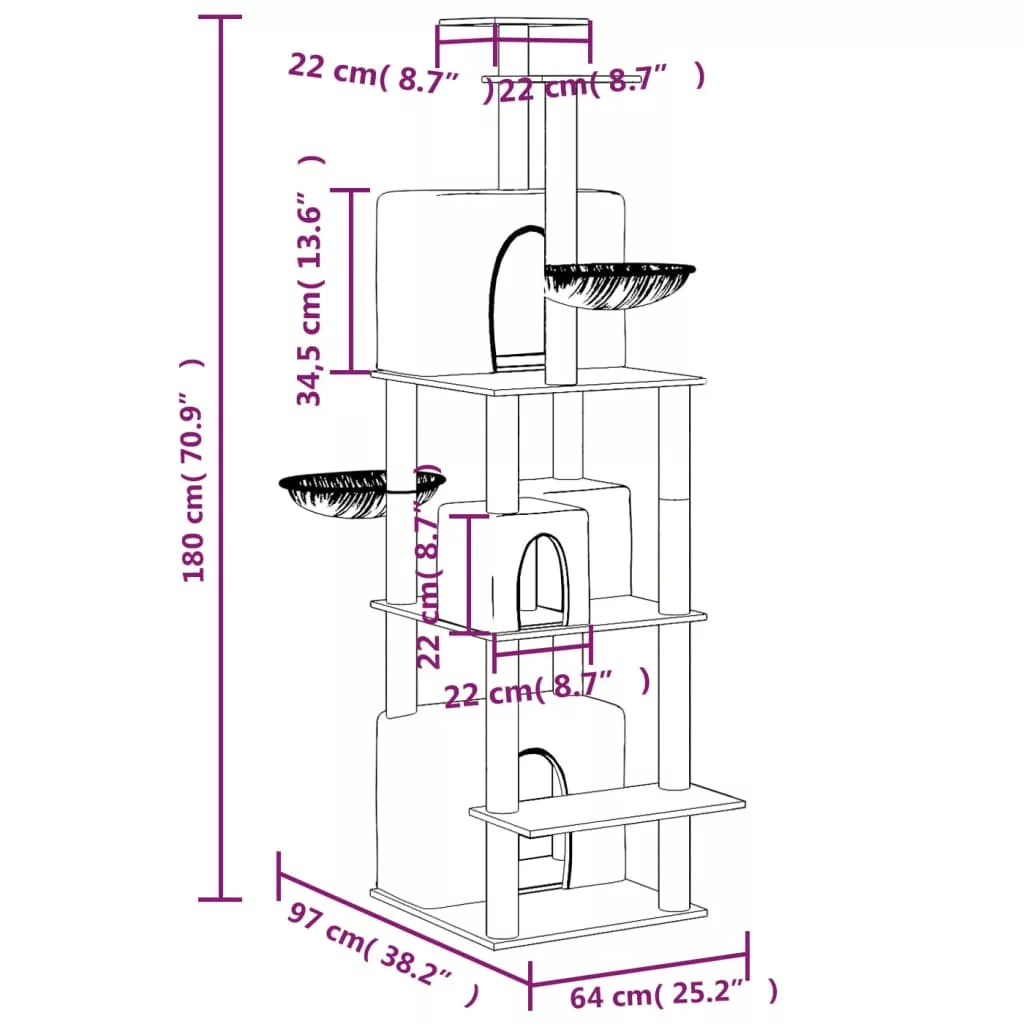 - Minden egyben macskatorony: A többszintes macskabútor 4 házzal, 2 függőággyal és emelvényekkel lett ellátva, tökéletes helyet biztosítva macskáinak a mászáshoz, környezetük megfigyeléséhez, a kaparáshoz, a bujkáláshoz és a pihenéshez.