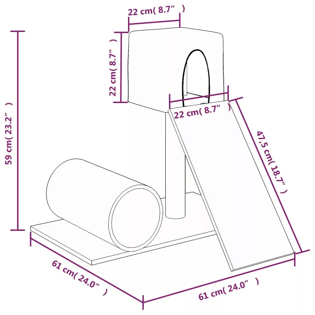 - Minden egyben macskatorony: A többszintes macskabútor egy házzal, egy alagúttal és egy létrával lett ellátva, tökéletes helyet biztosítva macskáinak a mászáshoz, kaparáshoz, bujkáláshoz és pihenéshez.
