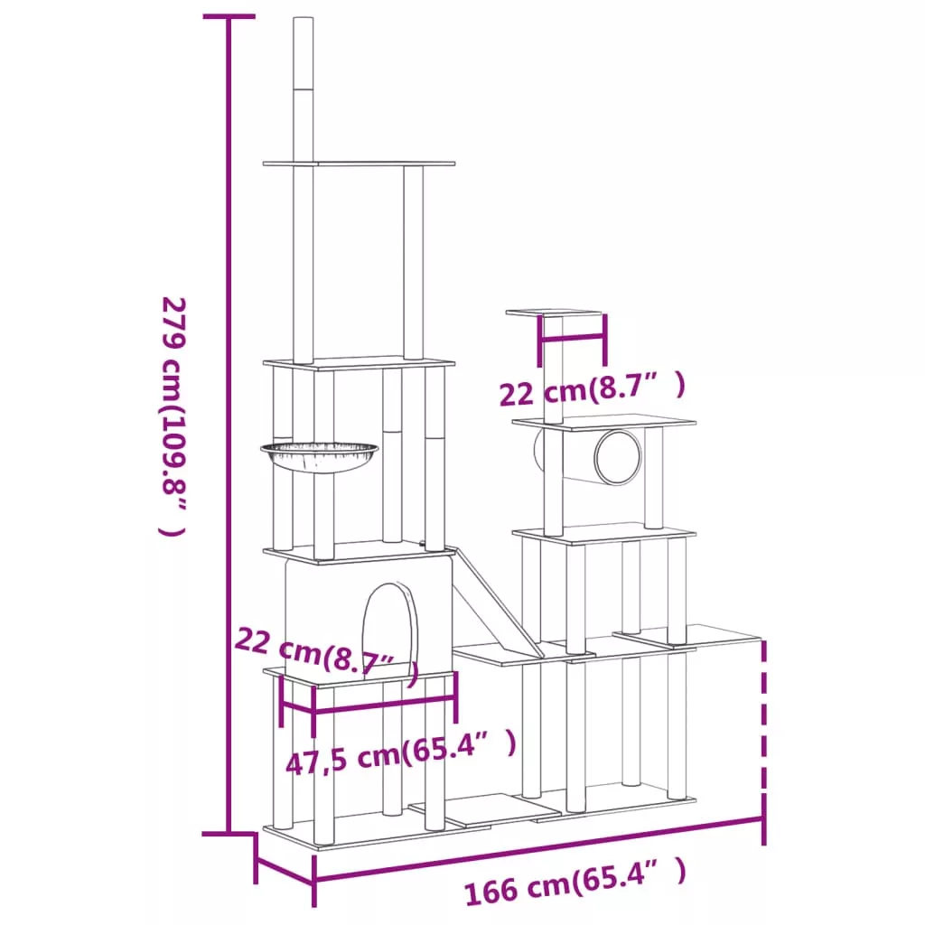 - Természetes szizáloszlopok: A kaparófa rugalmas és erős, természetes szizáloszlopai tökéletesek szeretett macskái számára, hogy kielégítsék kaparóösztönüket, és ne a bútorait karcolják meg.