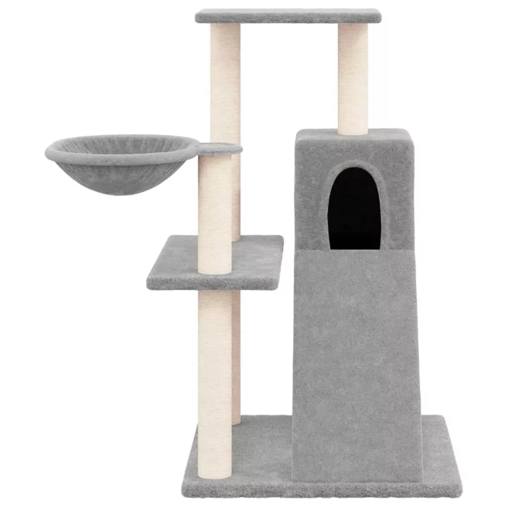 - Természetes szizáloszlopok: A kaparófa rugalmas és erős, természetes szizáloszlopai tökéletesek szeretett macskái számára, hogy kielégítsék kaparóösztönüket, és ne a bútorait karcolják meg.