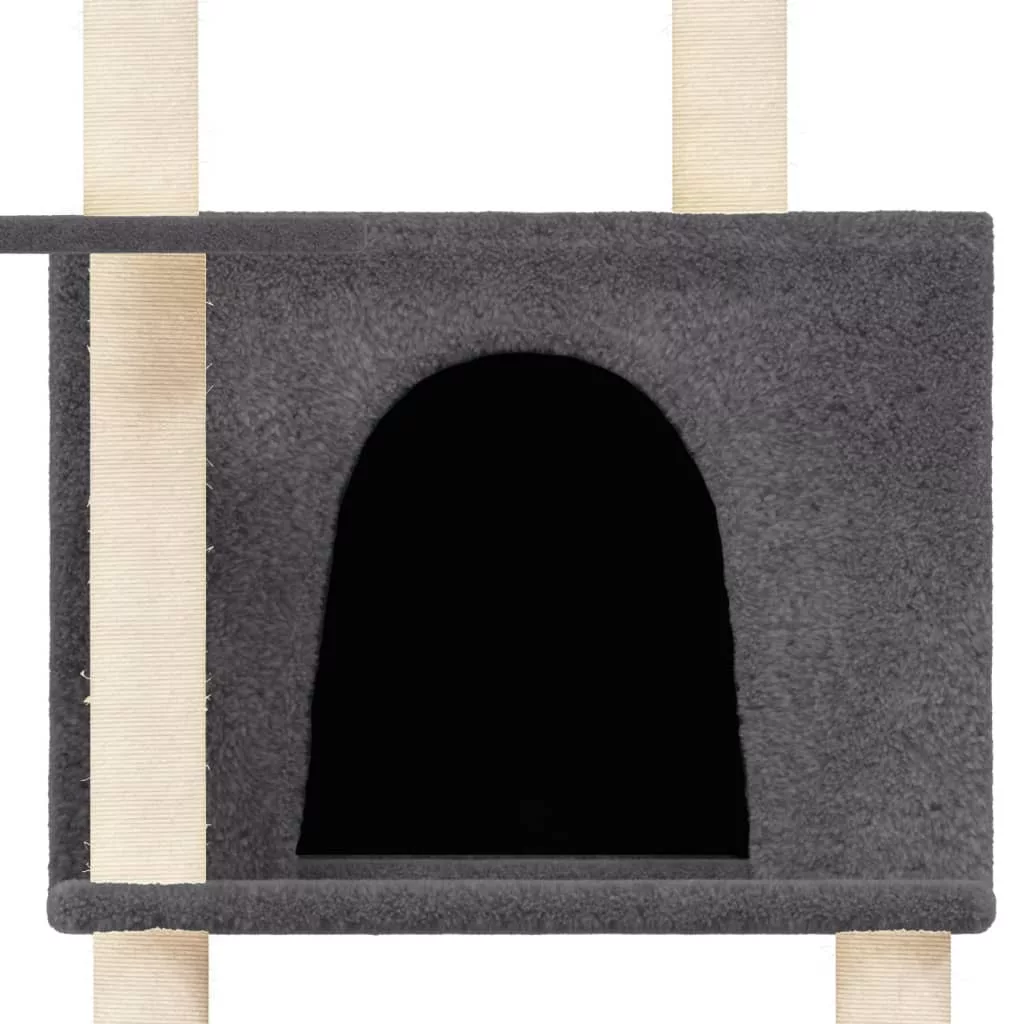 - Természetes szizáloszlopok: A kaparófa rugalmas és erős, természetes szizáloszlopai tökéletesek szeretett macskái számára, hogy kielégítsék kaparóösztönüket, és ne a bútorait karcolják meg.