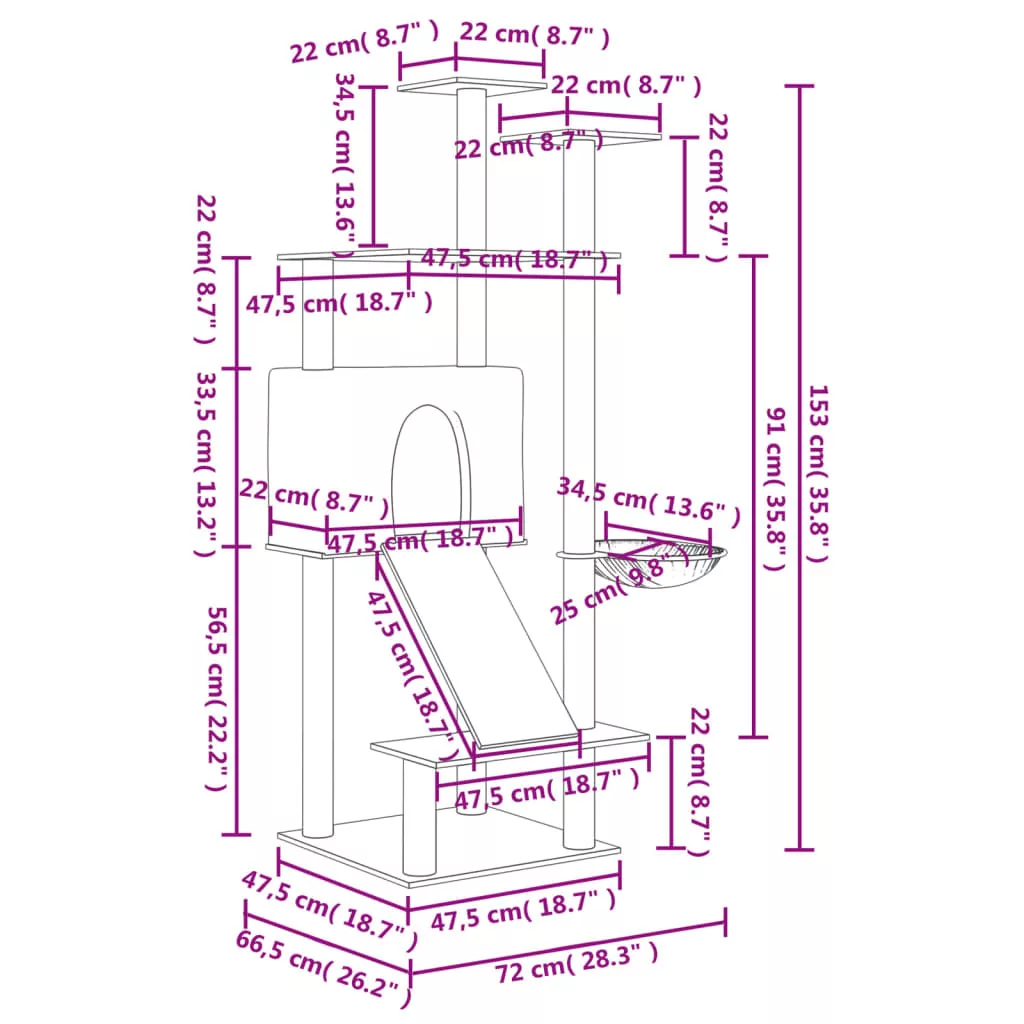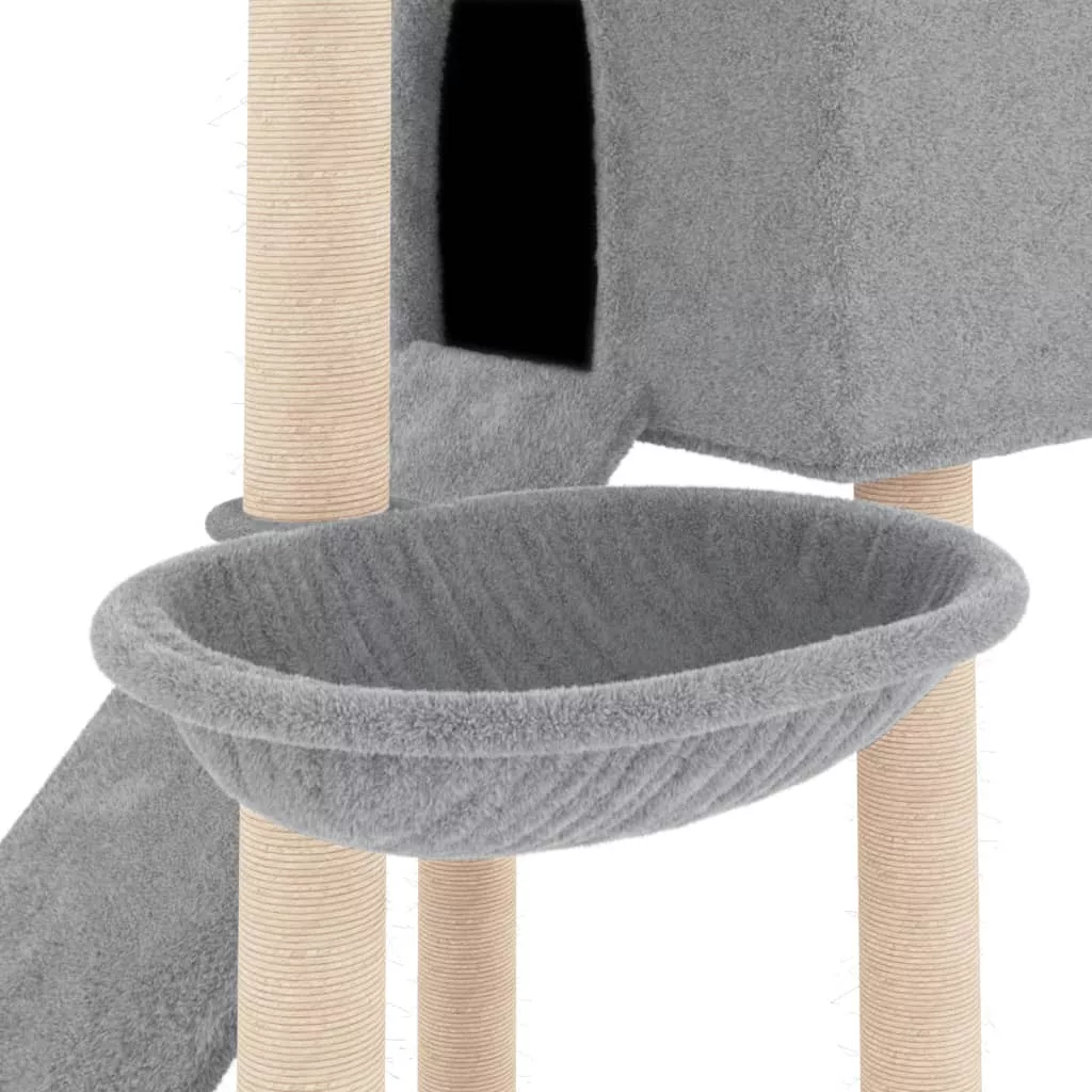 - Tartós szizáloszlopok: A kaparófa rugalmas és erős, természetes szizáloszlopai tökéletesek szeretett macskái számára, hogy kielégítsék kaparóösztönüket, és ne a bútorait karcolják meg.