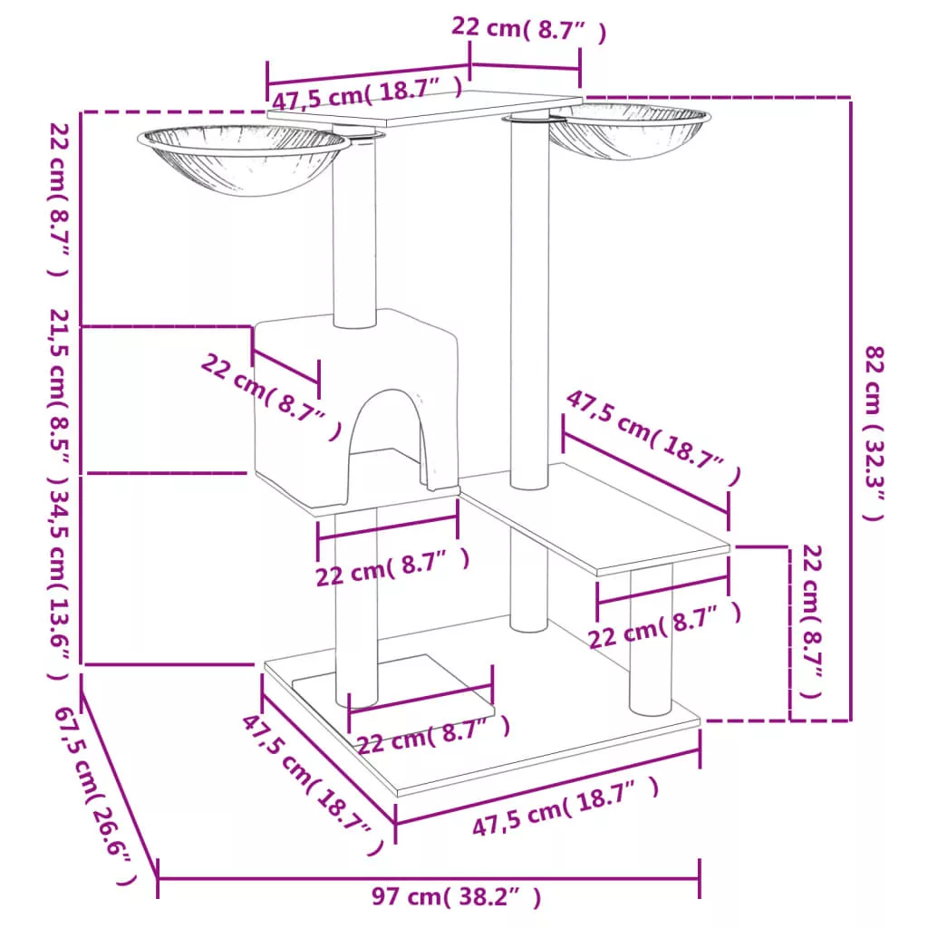 - Tartós szizáloszlopok: A kaparófa rugalmas és erős, természetes szizáloszlopai tökéletesek szeretett macskái számára, hogy kielégítsék kaparóösztönüket, és ne a bútorait karcolják meg.