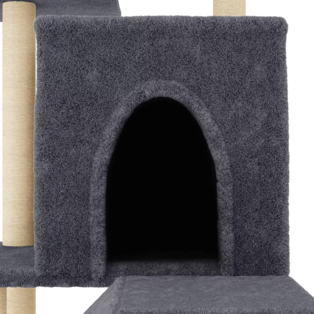 - Tartós szizáloszlopok: A kaparófa rugalmas és erős, természetes szizáloszlopai tökéletesek szeretett macskái számára, hogy kielégítsék kaparóösztönüket, és ne a bútorait karcolják meg.