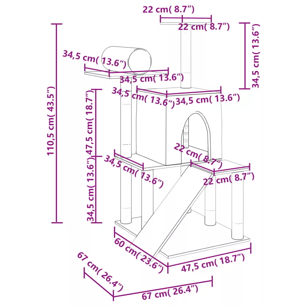 - Összfunkciós macskatorony: A többszintes macskabútor egy házzal, egy létrával, egy alagúttal és emelvényekkel lett ellátva, tökéletes helyet biztosítva macskáinak a mászáshoz, kaparáshoz, bújócskához és pihenéshez.