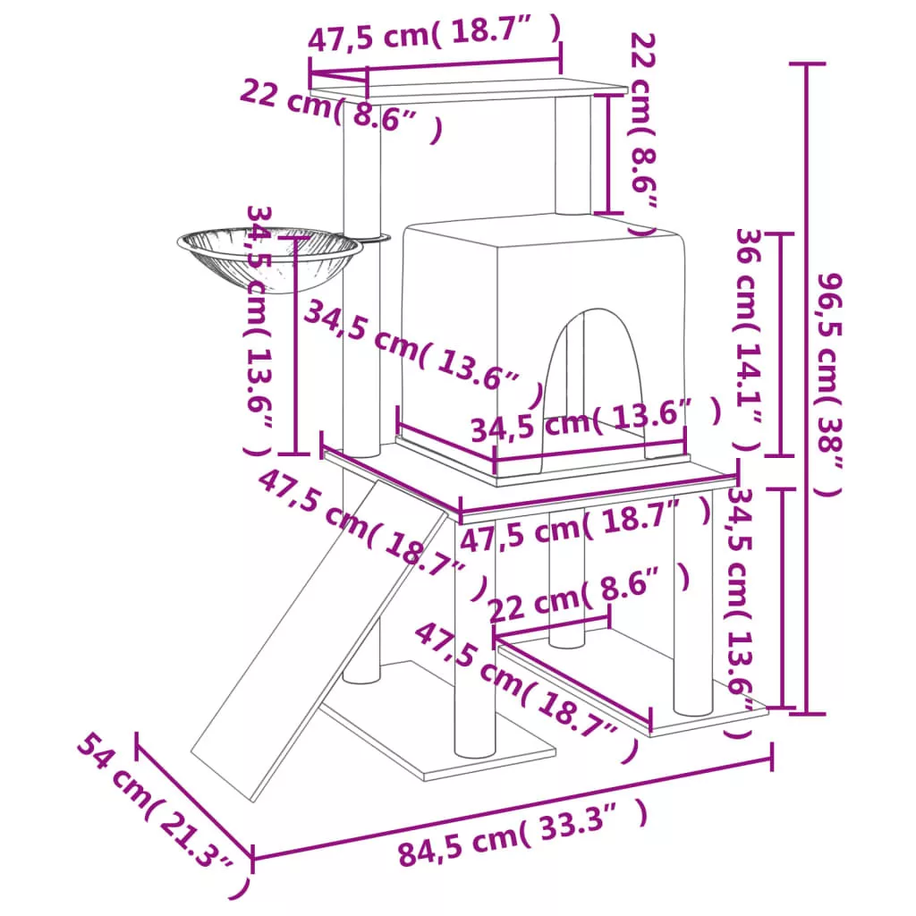 - Minden egyben macskatorony: A többszintes macskabútor egy házzal, egy létrával, egy kosárral és több emelvénnyel lett ellátva, tökéletes helyet biztosítva macskáinak a mászáshoz, kaparáshoz, bujkáláshoz és pihenéshez.