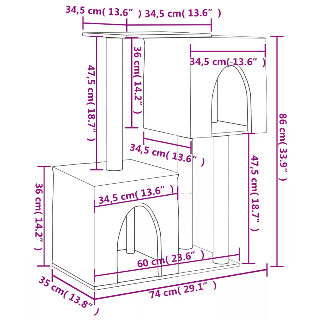 - Minden egyben macskatorony: A többszintes macskabútor 2 házzal és platformmal lett ellátva, tökéletes helyet biztosítva macskáinak a mászáshoz, kaparáshoz, bujkáláshoz és pihenéshez.