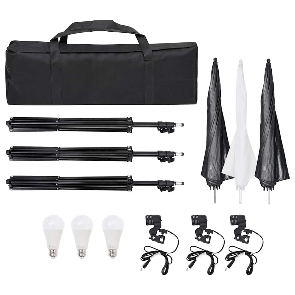 Ez a stúdiólámpaszett 3 nappali fényt árasztó lámpát, 3 lámpatartót, 3 háromlábú állványt és 3 ernyőt tartalmaz (1 db fehér, 2 db ezüst). Fotózáshoz és videózáshoz alkalmas, és könnyen magával viheti.