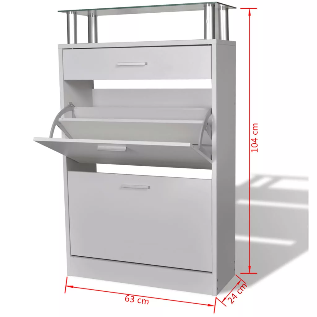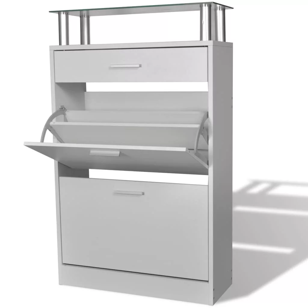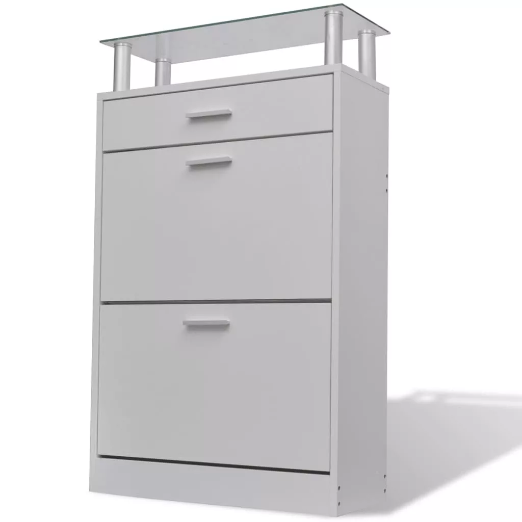 Ez a fiókkal, üveg felső polccal és 2 nagyméretű tárolórekesszel ellátott fa cipőszekrény egyszerű, mégis stílusos dizájnnal rendelkezik. Nem kell többé azon bosszankodnia, hogy szanaszét hevernek a cipői.