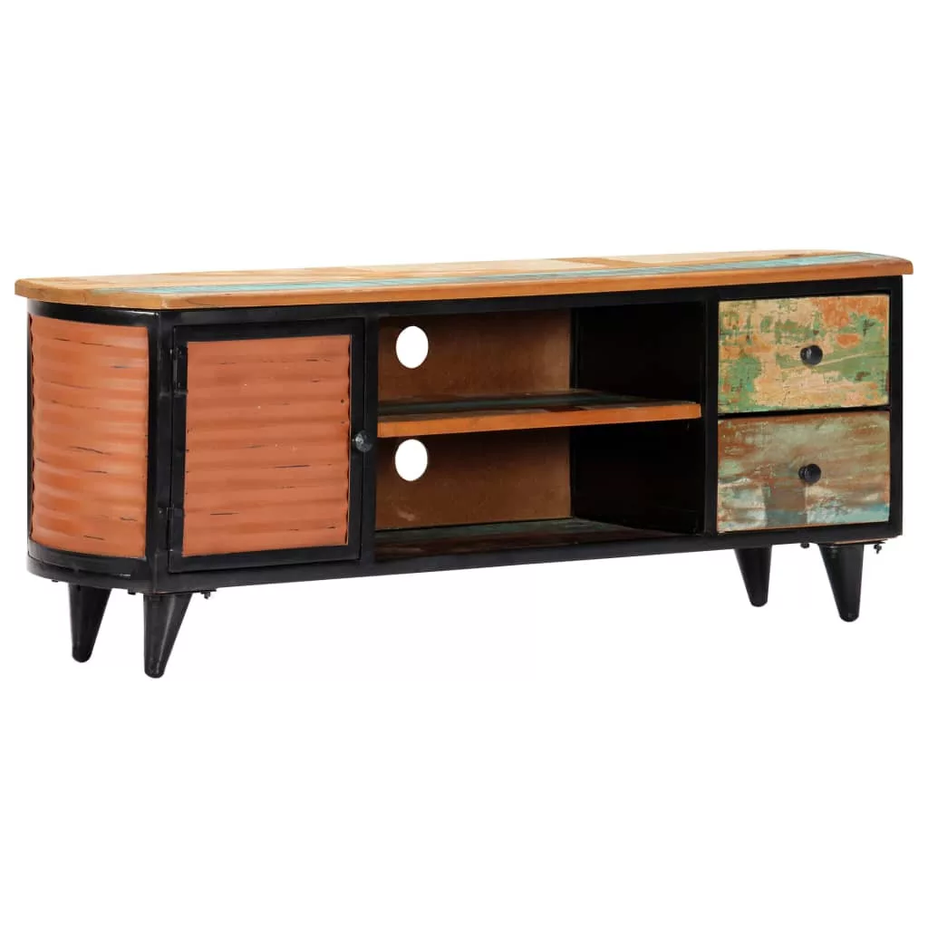 Ennek a fa TV-szekrénynek minden része egyenlően kifinomult és elegáns. A tömör újrahasznosított fából és porszórt vasvázzal készült bútor egyszerre büszkélkedhet a régiesség bájával és az ipari megjelenéssel, valamint jellegzetes kiegészítője lesz otthonának.