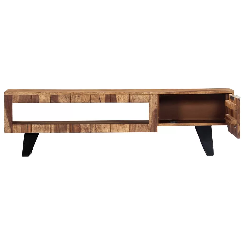 Ez a modern stílusú TV-szekrény tömör akácfából készült, így időtlen kiegészítője lesz otthonának. A kelet-indiai rózsafa, más néven akácia vagy paliszander, egy trópusi keményfa, mely gazdag erezetéről ismert. A megmunkálás minden lépése a legnagyobb gondossággal történik, legyen szó akár a csiszolásról, a festésről vagy a lakkozásról. Az erős acélváznak köszönhetően a TV-állvány rendkívül stabil és tartós. Tárolórekeszekkel lett felszerelve apróbb tárgyai, valamint multimédiás eszközei, játékkonzoljai és magazinjai tárolásához.