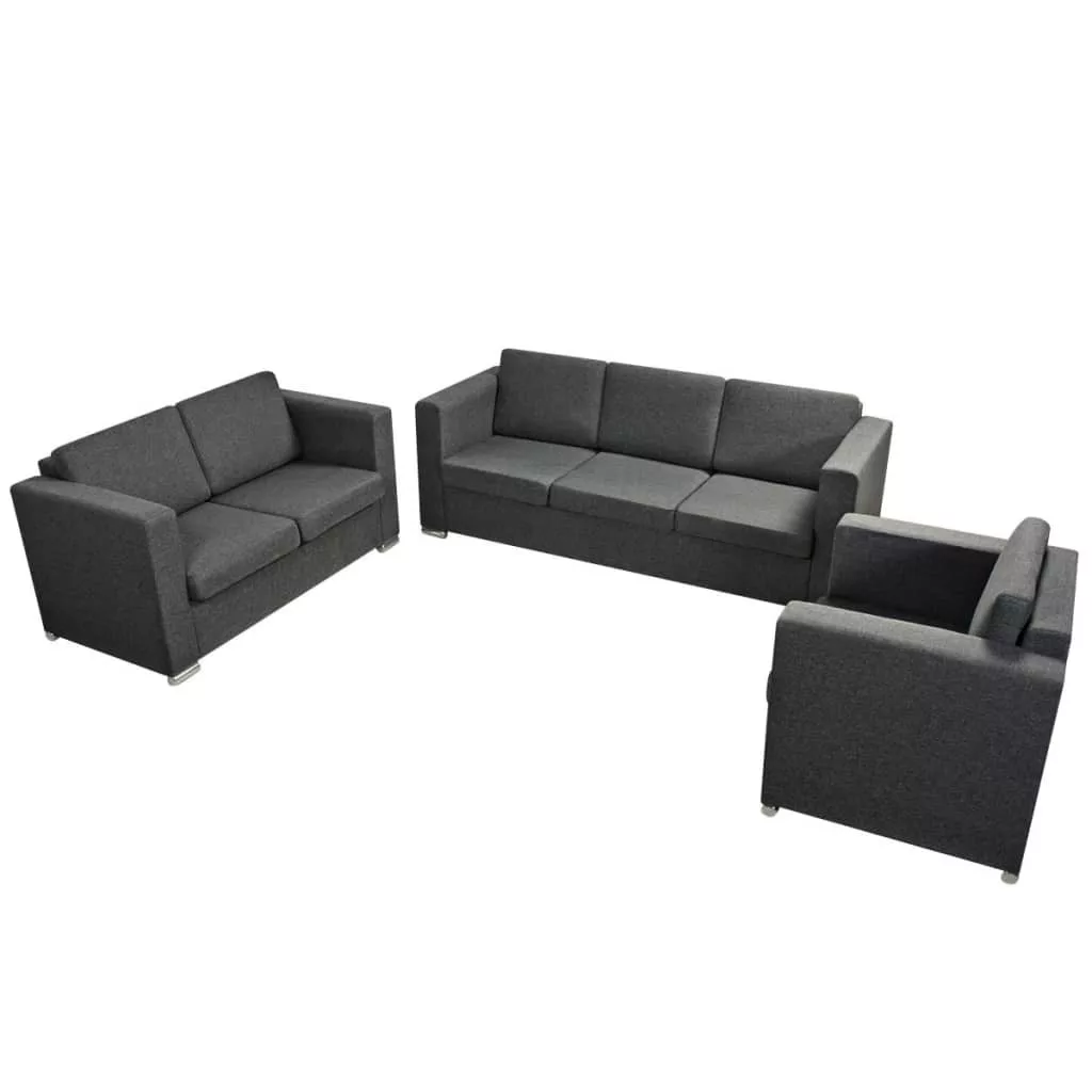 A szett 1 db egyszemélyes, 1 db kétszemélyes és 1 db 3 személyes kanapét tartalmaz.