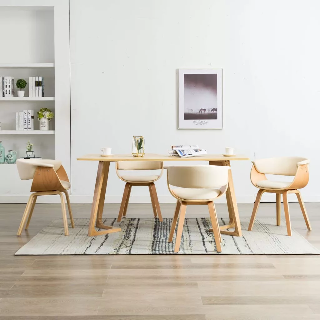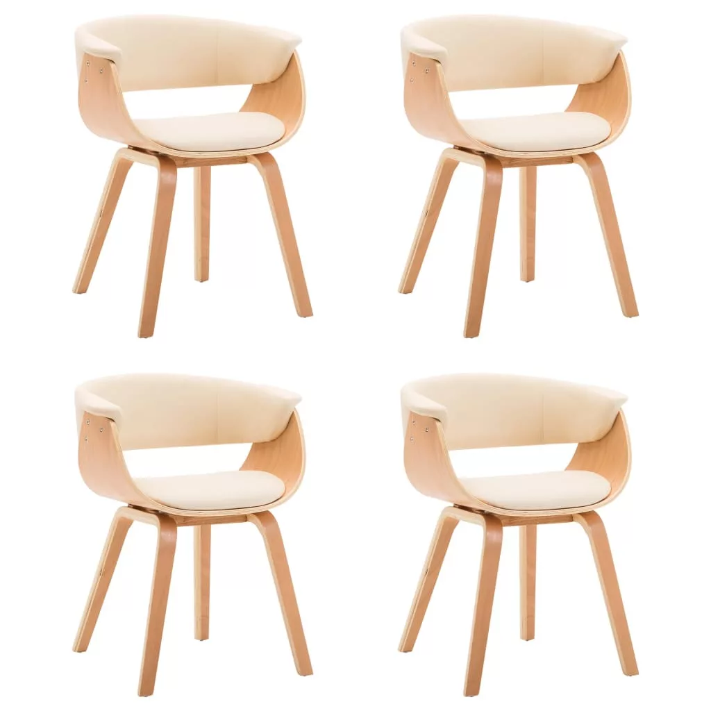 vidaXL 4 db krémszínű hajlított fa és műbőr étkezőszék