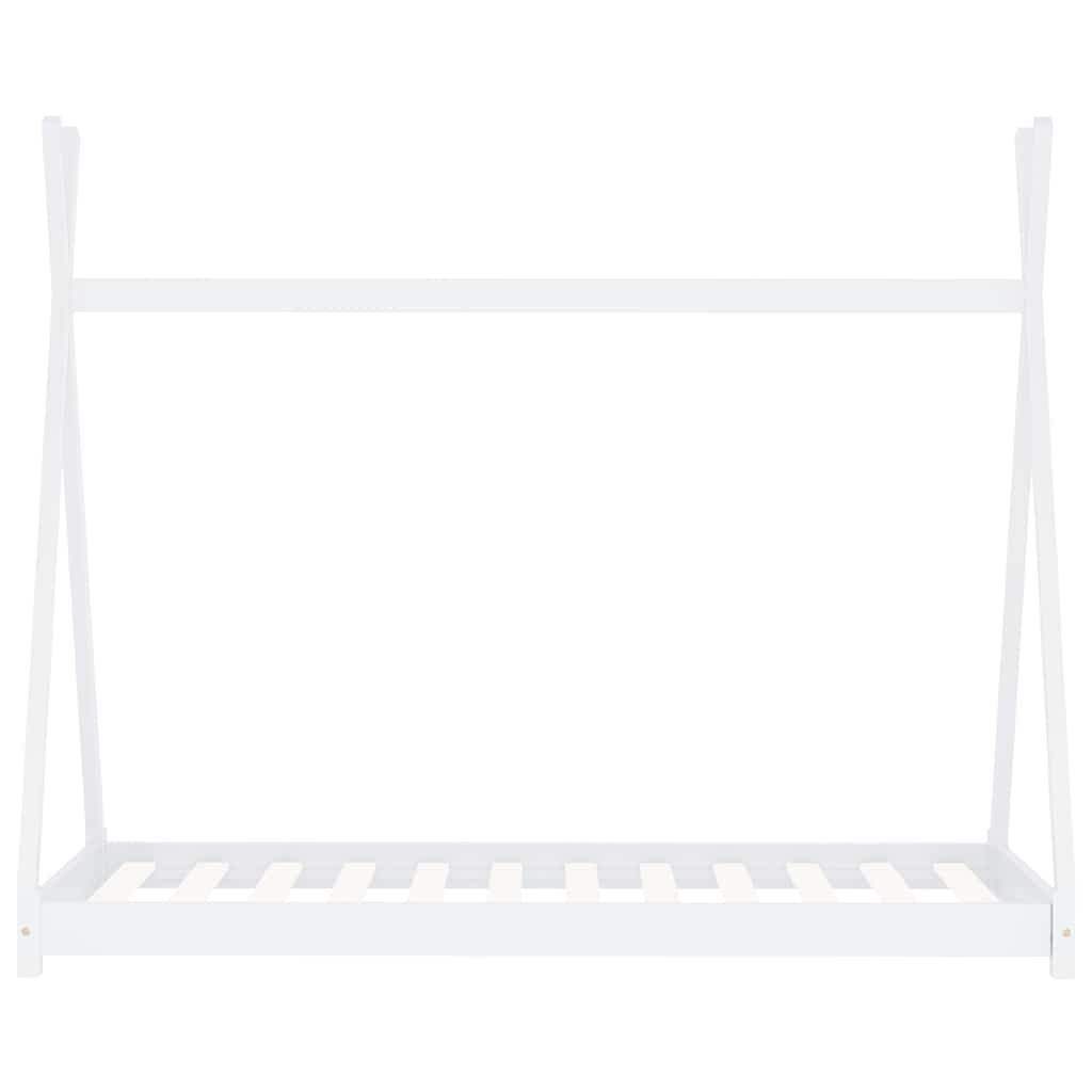 Az ágy újszerű, keresztező kerettel rendelkezik, amelyet a klassz tipi stílusú sátrak ihlettek, ahol ágyfüggönyöket akaszthat fel, hogy magánéletet teremtsen gyermeke számára. Olvasósarokként vagy játszóházként is használható gyermeke számára. Tömör fenyőfából készült, ez az ágykeret rendkívül masszív és tartós. Az erős lécek biztosítják a szükséges tartást, és nagyon kényelmesek. Ez az ágykeret 80 x 160 cm-es matrachoz alkalmas.