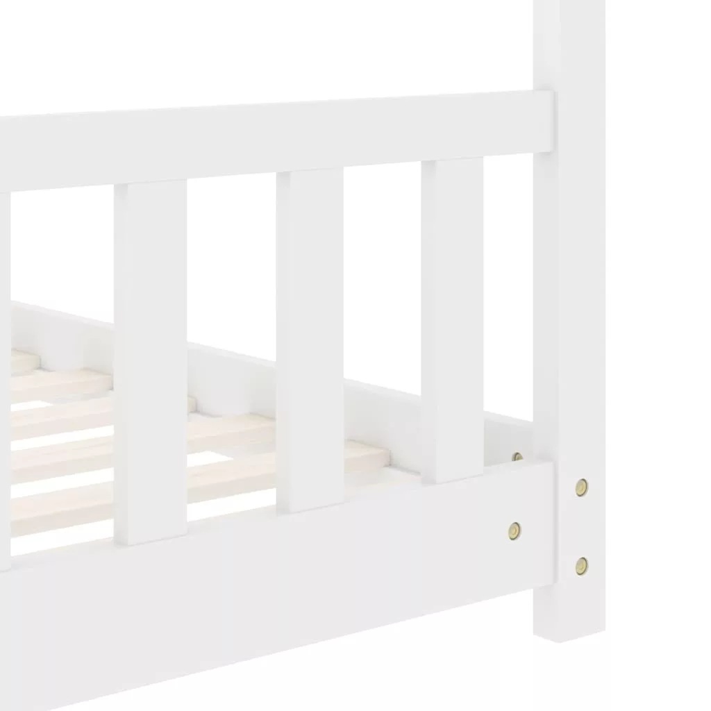 Az ügyesen kialakított, faház formájú keretre felfüggesztheti az ágyfüggönyöket, privát teret biztosítva ezzel gyermekének. Olvasósarokként vagy játszóházként is használható. A tömör fenyőfából készült ágykeret rendkívül masszív és tartós. Az erős lécek megfelelő támaszt biztosítanak, és nagyon kényelmesek. Ez az ágykeret 80 x 160 cm méretű matracokhoz illik.