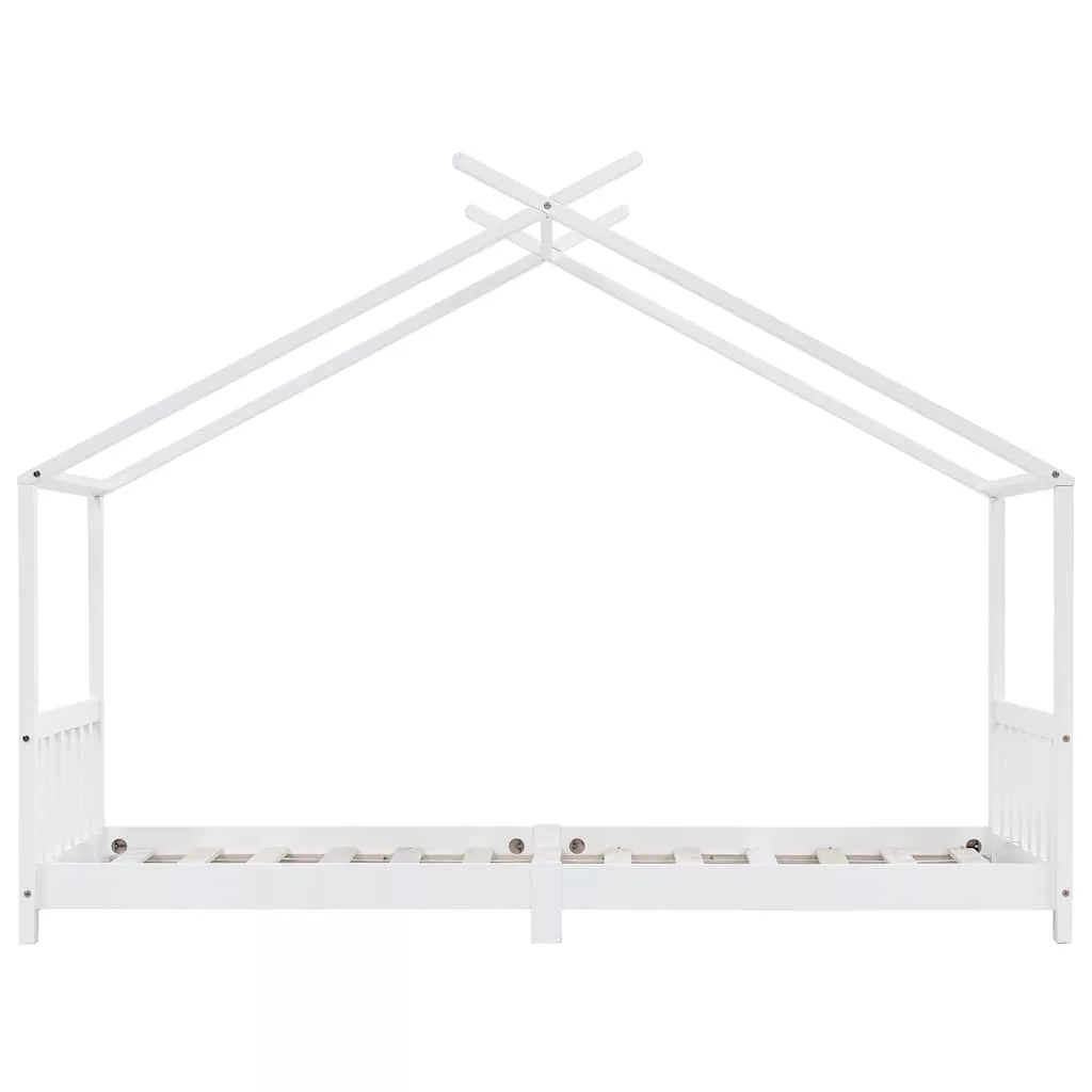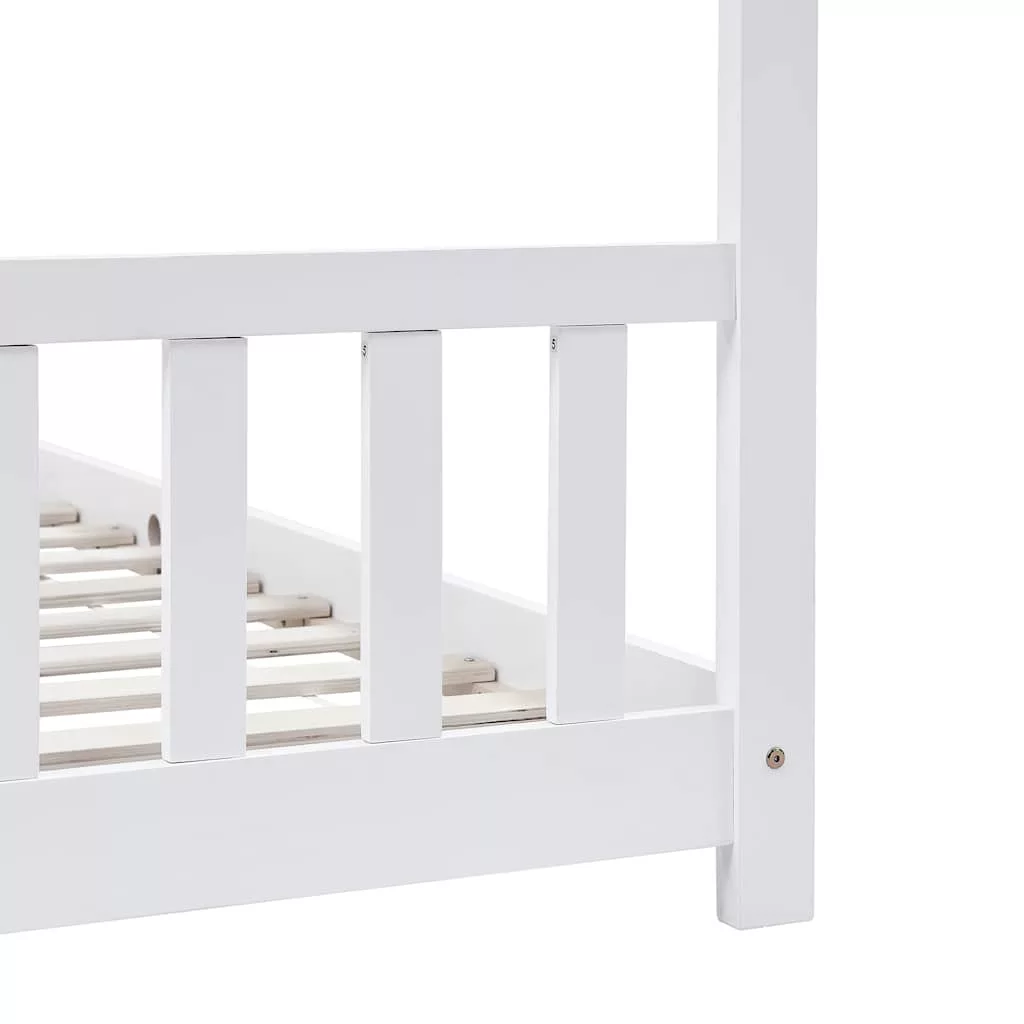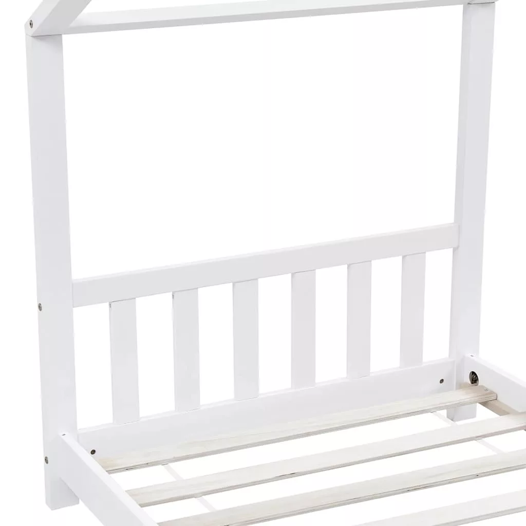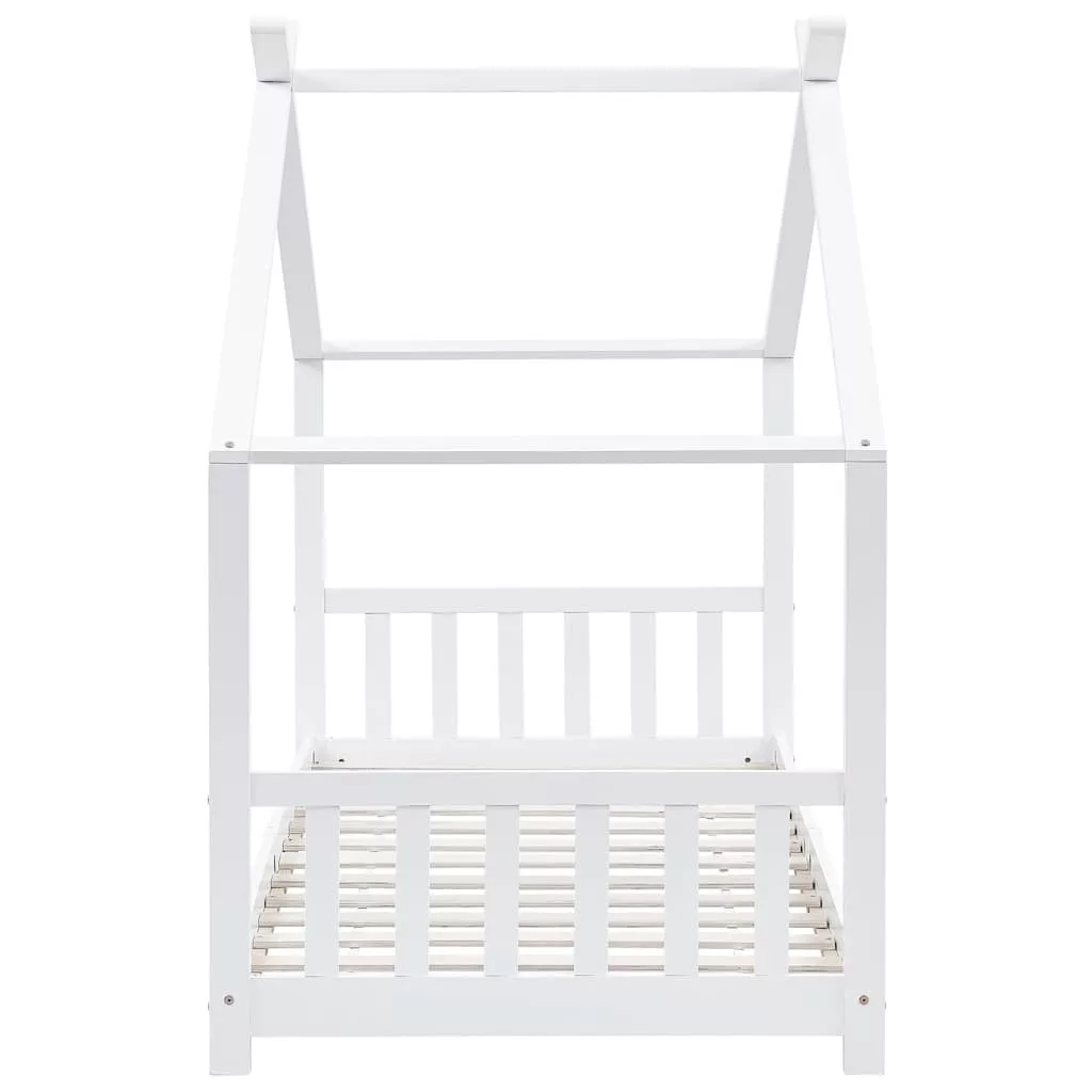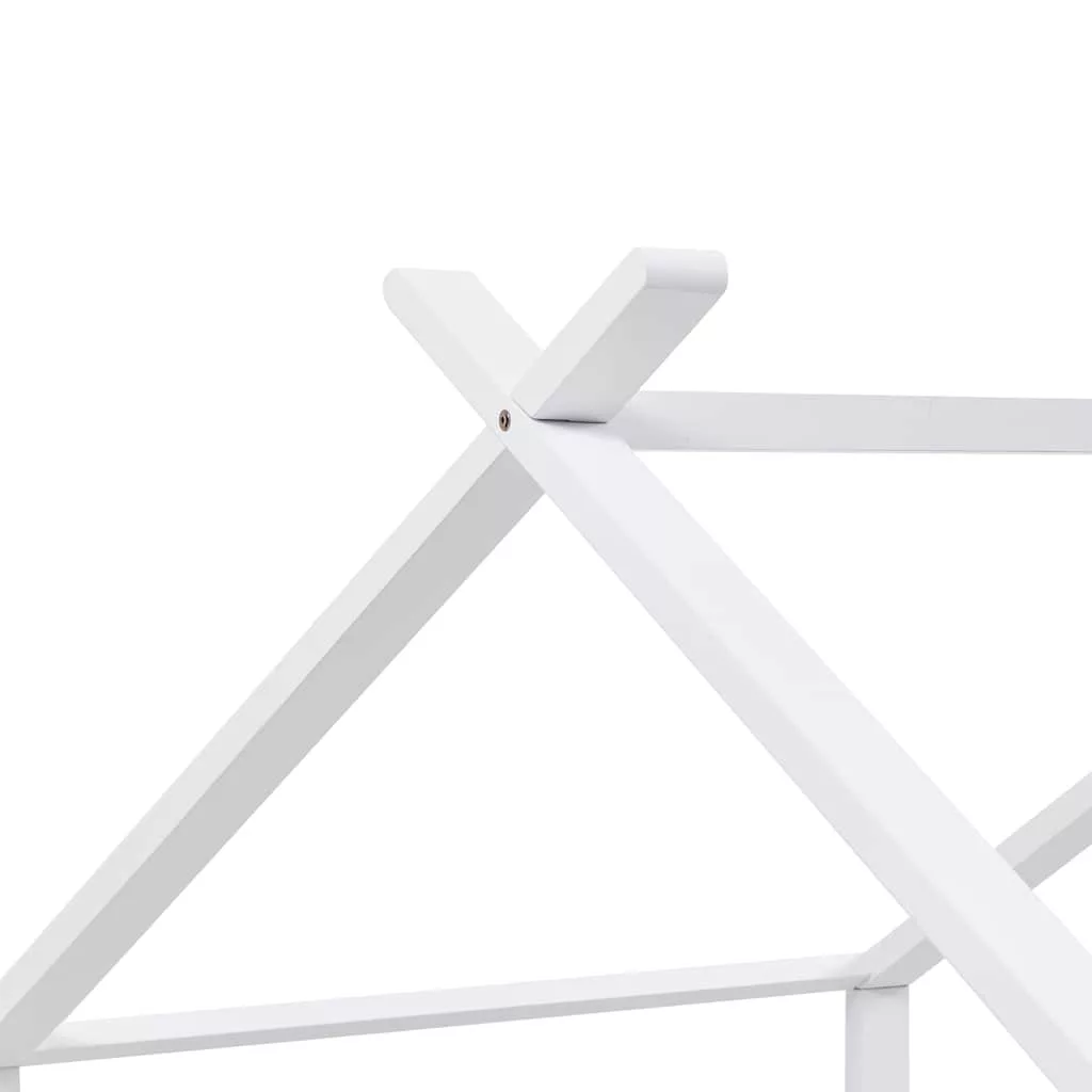 Az okosan kialakított faház formájú keretre felfüggesztheti az ágyfüggönyöket, privát teret biztosítva gyermekének. Olvasósarokként vagy játszóházként is használható. A tömör fenyőfából készült ágykeret rendkívül masszív és tartós. Az erős lécek megfelelő támaszt biztosítanak, és nagyon kényelmesek. Ez az ágykeret 90 x 200 cm méretű matracokhoz illik.