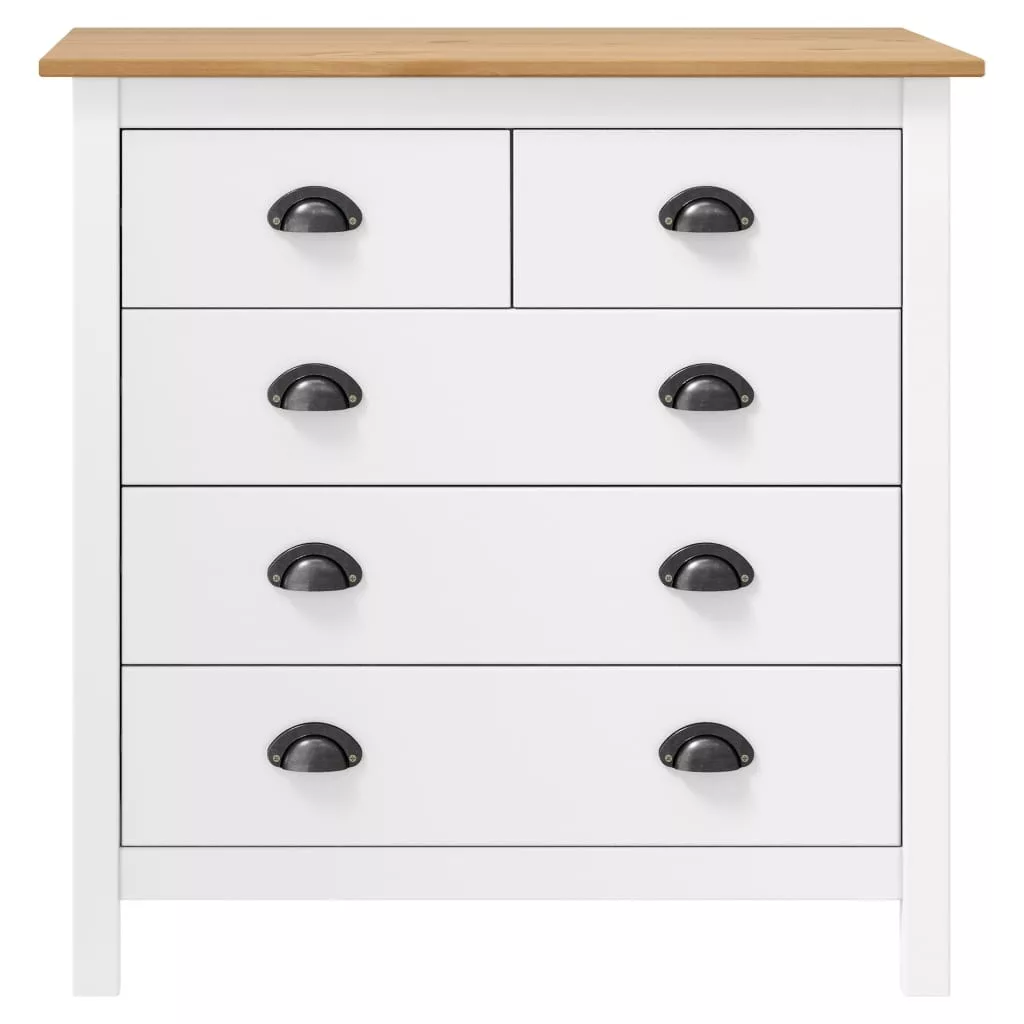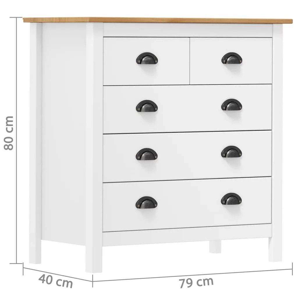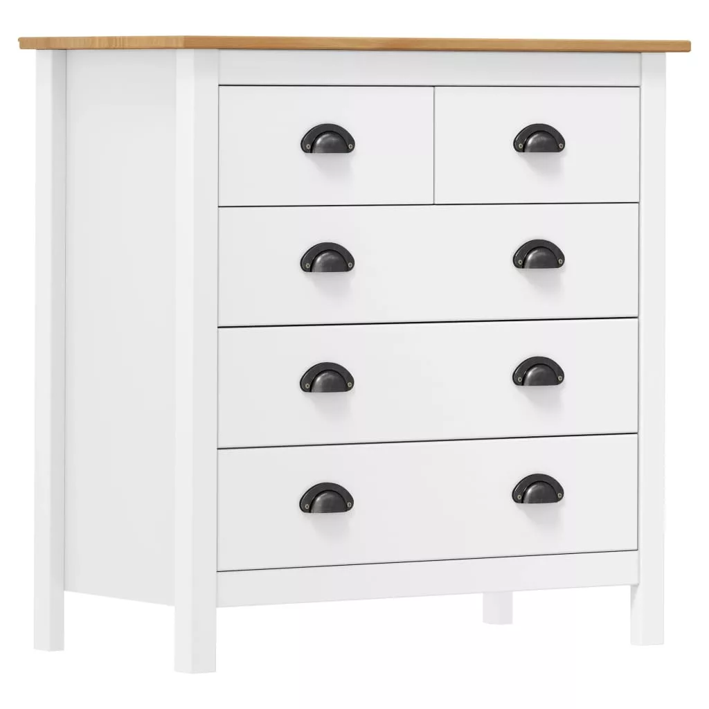 A kompakt szekrény 5 zökkenőmentesen futó fiókkal rendelkezik és bőséges helyet kínál apróbb tárgyai kézközelben történő rendezett tárolásához. A téglalap alakú asztallapra gyümölcskosár vagy egyéb dísztárgy, például keretezett fénykép vagy cserepes növény helyezhető. A tárolószekrény könnyen összeszerelhető.
