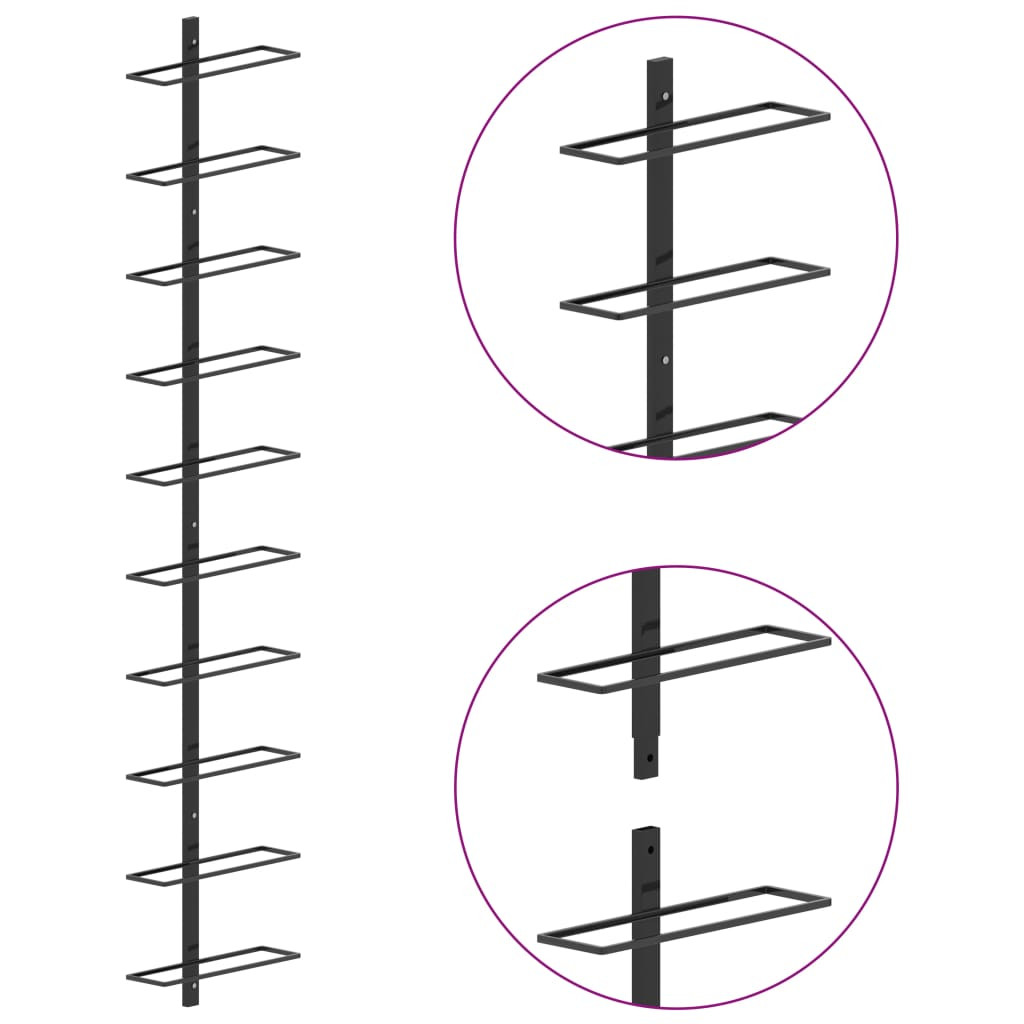 A bortartó 10 palack bor tárolására alkalmas. Porszórt fémből készült, így rendkívül tartós, és könnyen karbantartható. Ideális választás ajándékként borrajongó barátainak és ismerőseinek. Emellett a mellékelt szerelőanyagokkal a bortartó könnyen a falhoz rögzíthető. A bortartót könnyű összeszerelni.