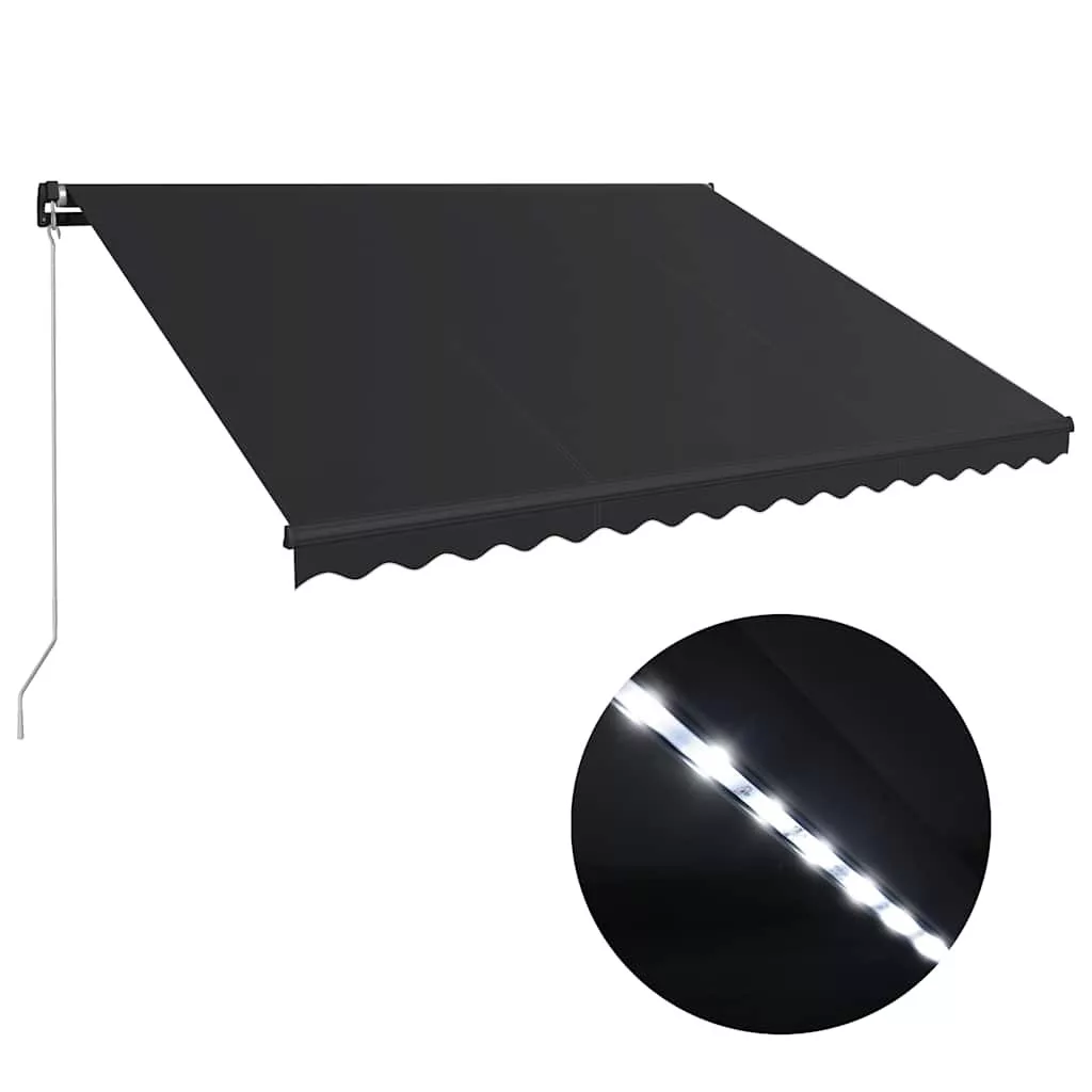 A rozsdaálló, porszórt alumínium vázzal és könnyű, mégis szilárd szerkezettel rendelkező napellenző egy bizonyos mértékig ellenáll a szélnek. Az összecsukható karos napellenző szövete nagy sűrűségű, poliuretán bevonatú poliészterből készült, amely víz-, UV- és fakulásálló. A szög és a magasság az Ön igényei szerint állítható. A napellenző a hosszú hajtókarral zökkenőmentesen nyitható és visszahúzható. Emellett a karhoz erősített napelemes LED-lámpák éjjel energiahatékony világítást biztosítanak.