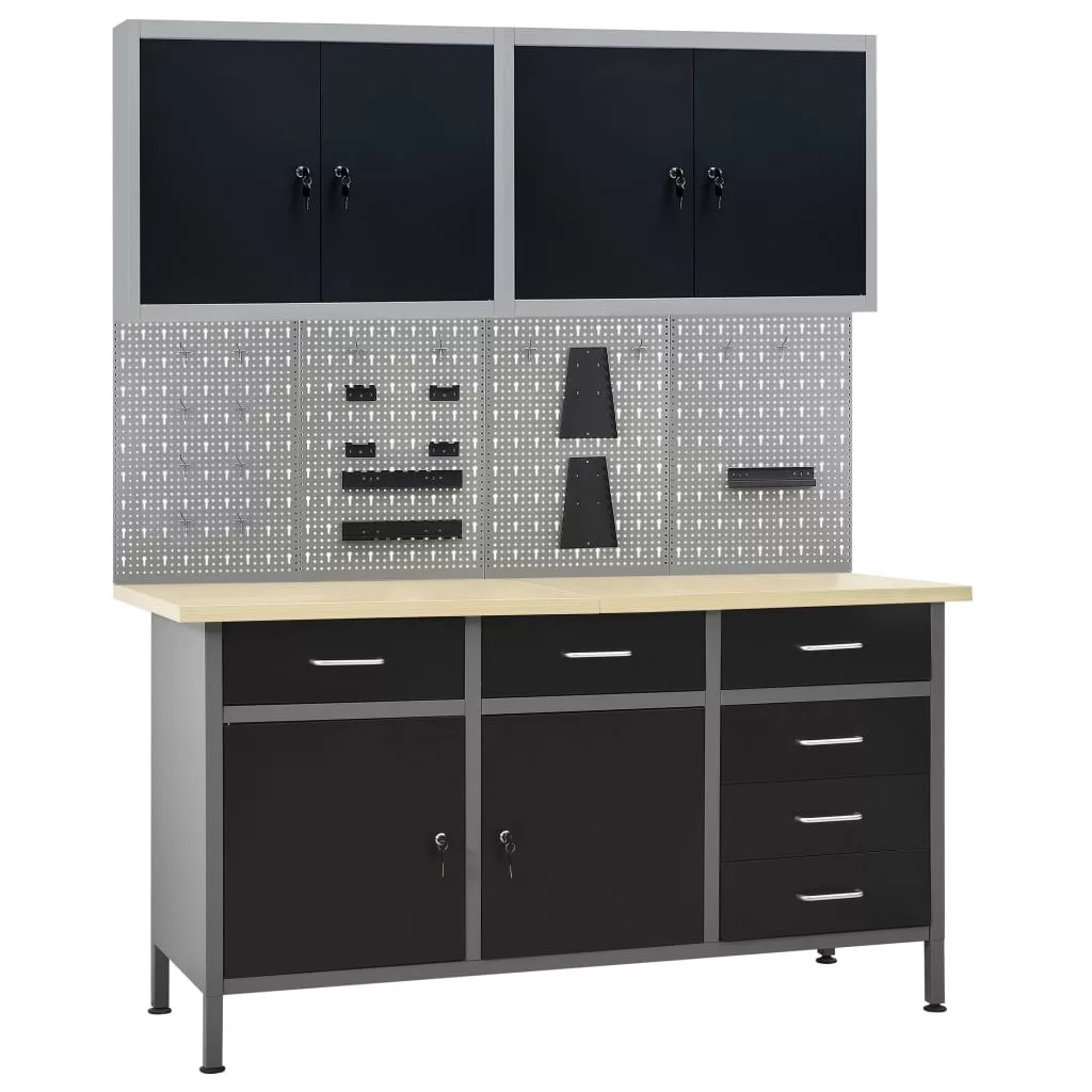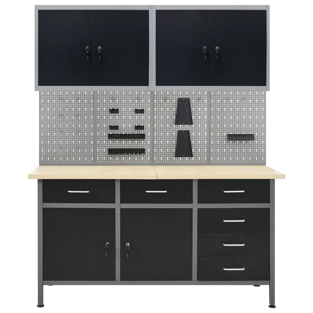 Ez az eszköz 1 nagy teherbírású munkapadból, 4 perforált fali panelből és 2 faliszekrényből áll, így kiváló választás a különféle szerszámok rendszerezésére és tárolására.