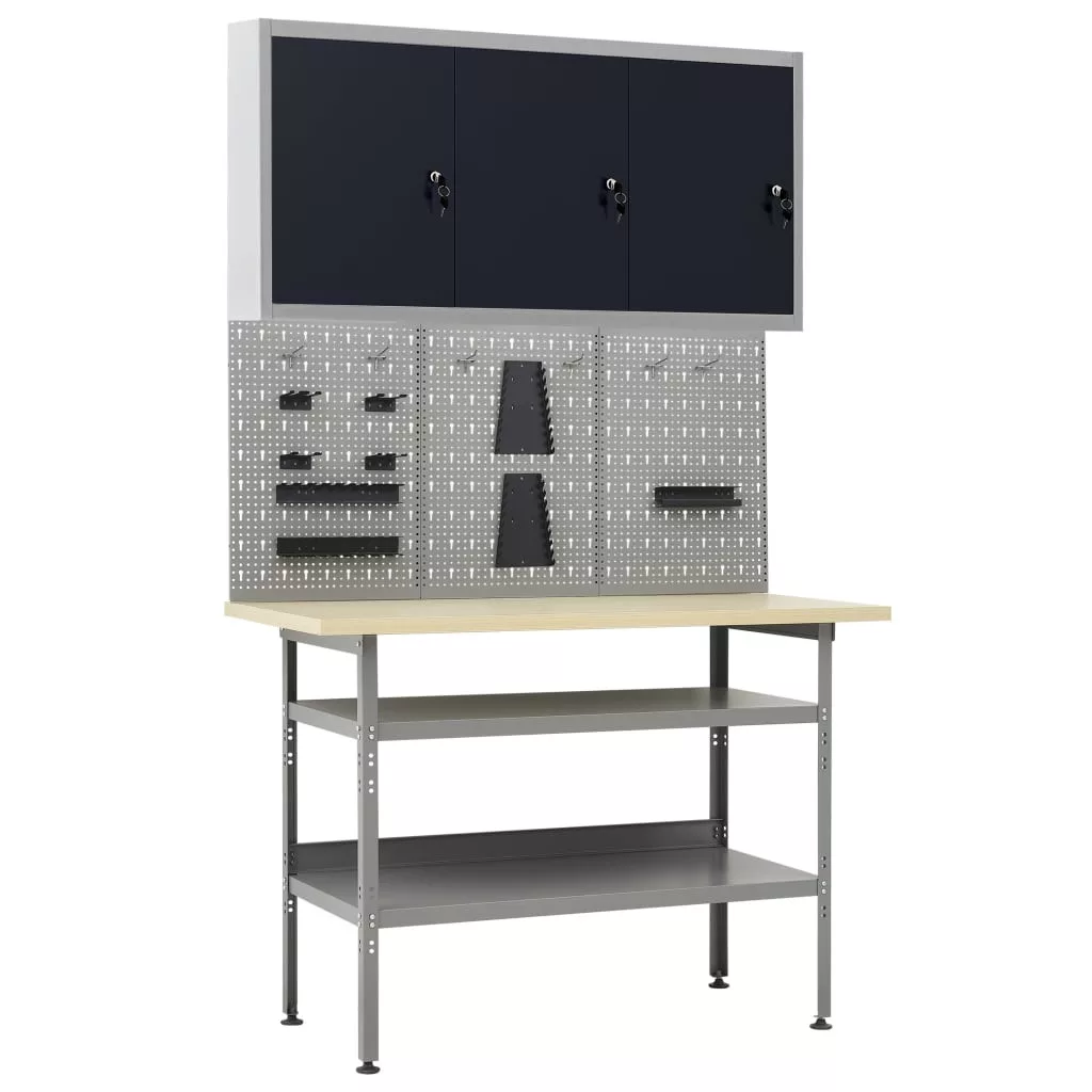 Ez a szett 1 munkapadból, 3 fali panelből és egy faliszekrényből áll, így praktikus tárolási megoldás műhelyében és garázsában.
