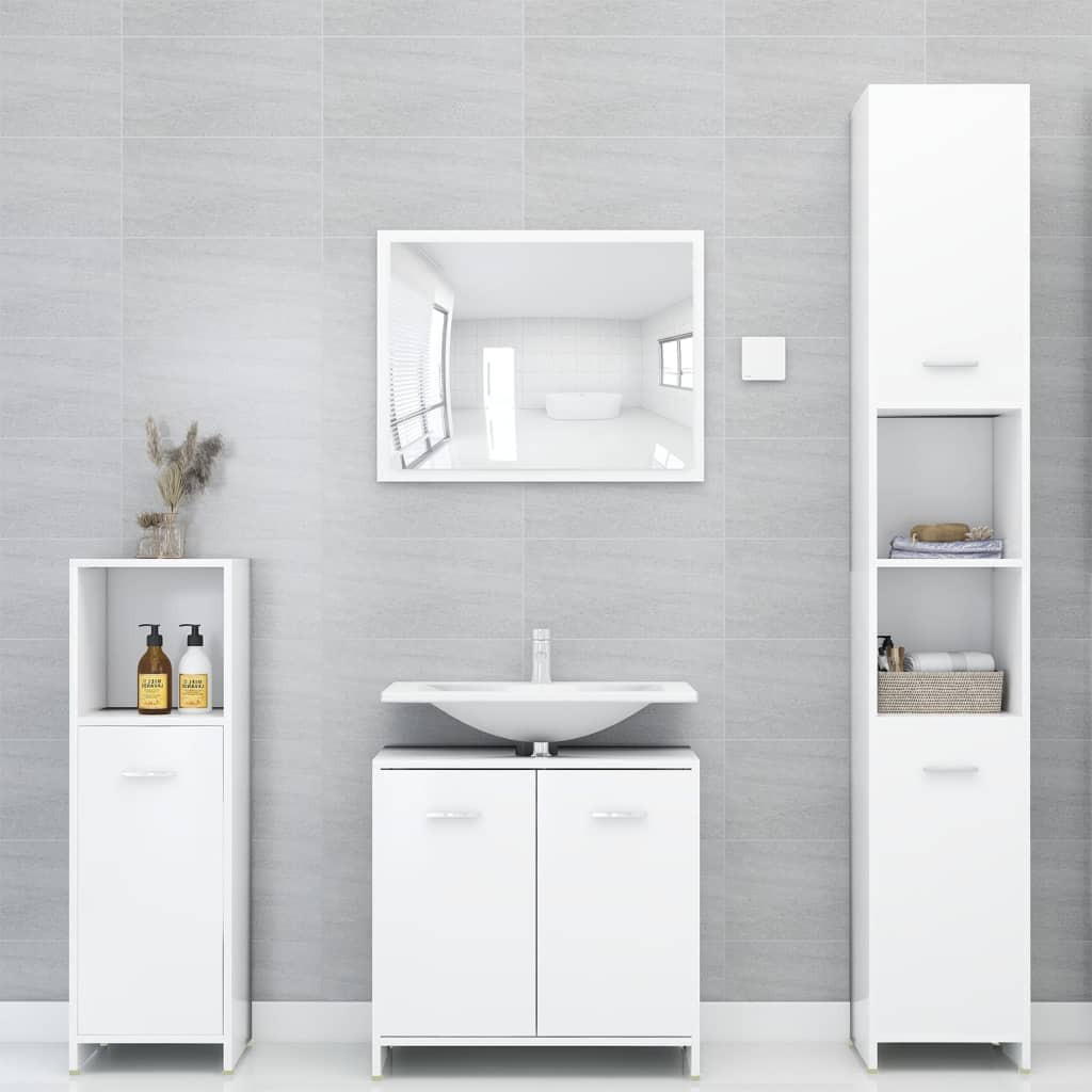 Ez a minőségű szerelt fából készült bútorszett egyszerre tartós és stabil. Az elegáns magasszekrény 6 rekesszel és 2 ajtóval, míg a közepes szekrény 3 rekesszel és 1 ajtóval rendelkezik. Mindkettő bőséges helyet kínál fürdőszobai kellékei tárolásához. A mosdószekrény 1 rekesszel és 2 ajtóval lett ellátva, amiben szépítőszereit, piperekellékeit és egyéb kisebb tárgyait helyezheti el. A polcokon még fésűit, kozmetikumait, fogkeféit és fogkrémeit is csinosan elrendezheti, hogy azok mindig kézközelben legyenek. A tükör egyedi megjelenéssel ruházza fel meglévő lakberendezését. Ráadásul ez a fürdőszobai bútorszett nedves ruhával könnyen tisztítható.