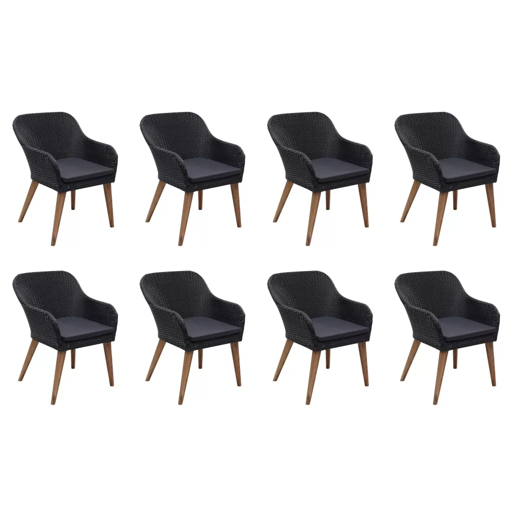 A vízálló PE rattannak köszönhetően a kerti székek könnyen tisztíthatóak, strapabíróak, és alkalmasak a mindennapos kültéri használatra. A készlet egy vintage stílusú asztallal érkezik, ami illik az elegáns székekhez. Az asztallap és a széklábak kiváló minőségű tömör akácfából készültek, ami egy vízálló és hosszú éveken át tartósan használható trópusi keményfa. Olajos felületkezelést kaptak. A kivitelezésnek és a gyönyörű faerezetnek köszönhetően minden bútordarab egyedi és kissé eltér a többitől. A készlet rendkívül kényelmes, vastagon bélelt párnákkal kerül szállításra a maximális üléskomfort biztosítása érdekében. A kevés karbantartást igénylő poliészter huzatok könnyen levehetőek és moshatóak.