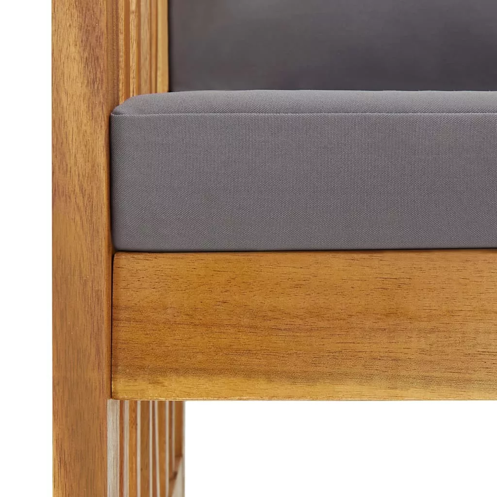 A kerti bútorszett tömör, olajbevonatos akácfából készült, így stabil és tartós. A vastag hát- és ülőpárnák lágy ülőélményt kínálnak. A tömör, lécezett fa asztallapnak köszönhetően a dohányzóasztal megfelelő helyet kínál a ropogtatnivalóknak, gyümölcskosaraknak, dísztárgyaknak és egyéb kellékeknek. Az enyhén ívelt hát- és kartámaszok növelik a pad és a szék kényelmét ülés közben.