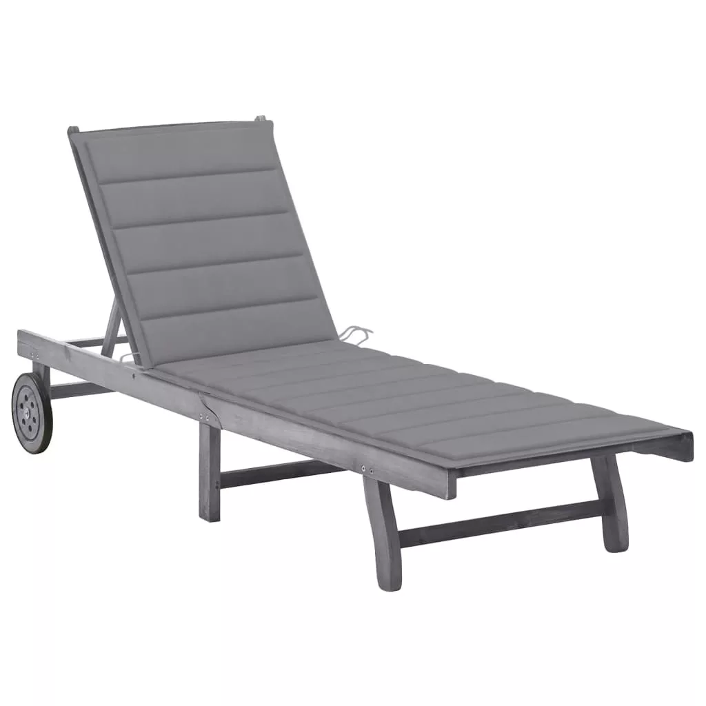 Ez a kültéri napozóágy szürke felületkezelésű tömör akácfából készült, így masszív és stabil. Az állítható háttámlának és lábtartónak köszönhetően a nyugágyat a kívánt helyzetben rögzítheti. Ez a kerti napágy 2 kerékkel is fel van szerelve, így könnyen mozgatható a ház körül. A párna extra kényelmet nyújt pihenés közben.