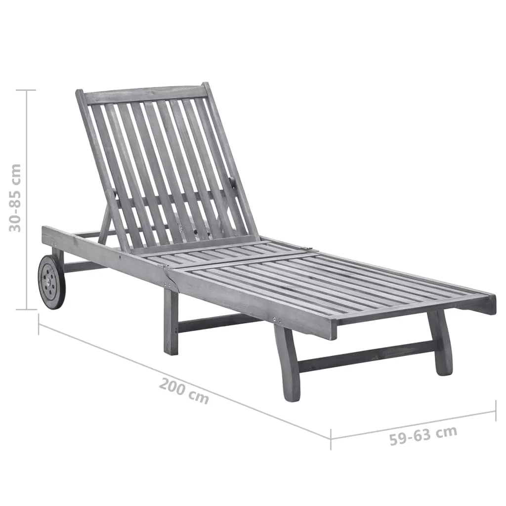 Ez a kültéri napozóágy szürke felületkezelésű tömör akácfából készült, így masszív és stabil. Az állítható háttámlának és lábtartónak köszönhetően a nyugágyat a kívánt helyzetben rögzítheti. Ez a kerti napágy 2 kerékkel is fel van szerelve, így könnyen mozgatható a ház körül. A párna extra kényelmet nyújt pihenés közben.
