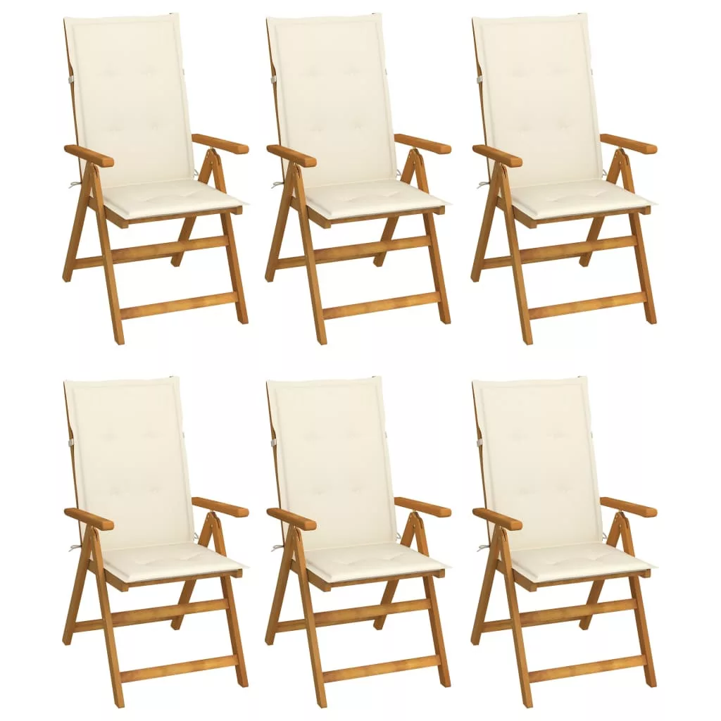 Az összecsukható szék tömör akácfából, egy trópusi keményfából készült, így stabil és tartós. Az olajjal kezelt felület nedves ruhával könnyen tisztítható. Az étkezőszék 5 helyzetbe állítható, így optimális kényelmet biztosít. A helytakarékosság érdekében használaton kívül összecsukható. Emellett a mellékelt párnák extra kényelmet nyújtanak pihenés vagy étkezés közben. Mindegyik párna a két oldalán két kötéllel, a háttámla mögött pedig rugalmas szíjjal rendelkezik, így szorosan rögzül a székhez.