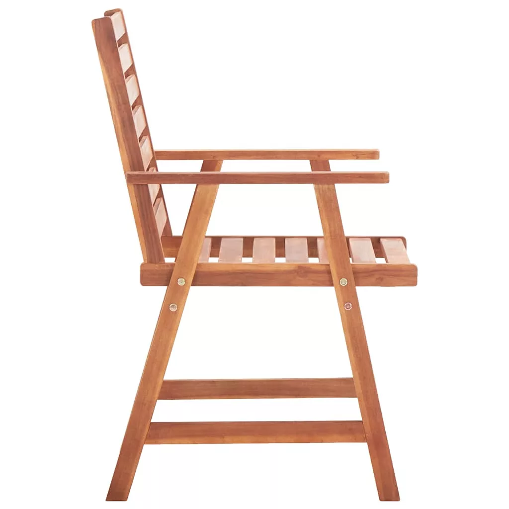 Párnával ellátott modern fa étkezőszékszettünk természetes stílust csempész a kertjébe, teraszára vagy verandájára. Ez a fa székszett nagyszerű választás a szabadtéri étkezéshez.