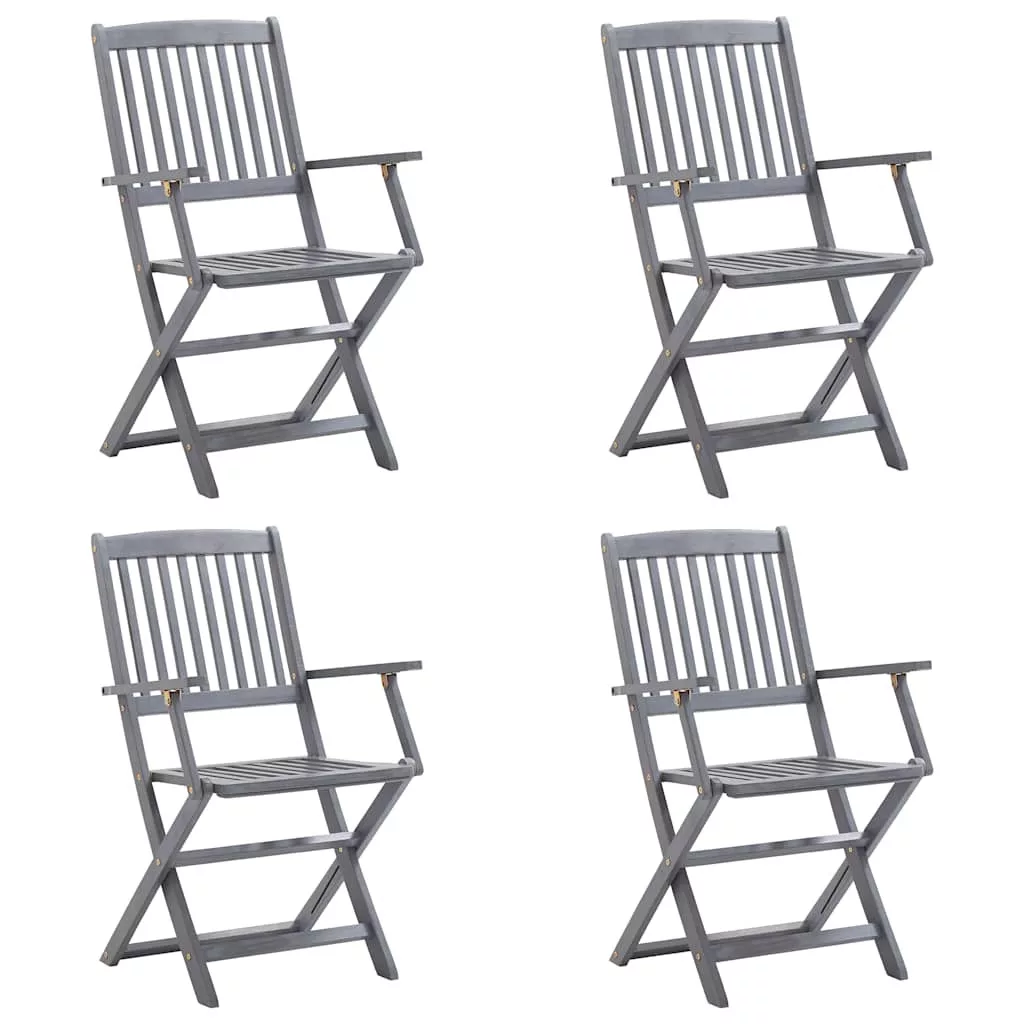 Ezek az étkezőszékek tömör akácfából, egy trópusi keményfából készültek, így időjárásállóak és évekig használhatóak. A tömör akácfa nem csupán erős, elbírva a ránehezedő súlyt, de ellenáll a kopásnak is. Az antikolt szürke felület nedves ruhával könnyen tisztítható. A székek a helytakarékosság érdekében használaton kívül összecsukhatóak. A mellékelt párnák további kényelmet nyújtanak pihenés vagy étkezés közben. A párnák mindegyike két fűzővel lett ellátva, amivel a székhez rögzíthetőek.