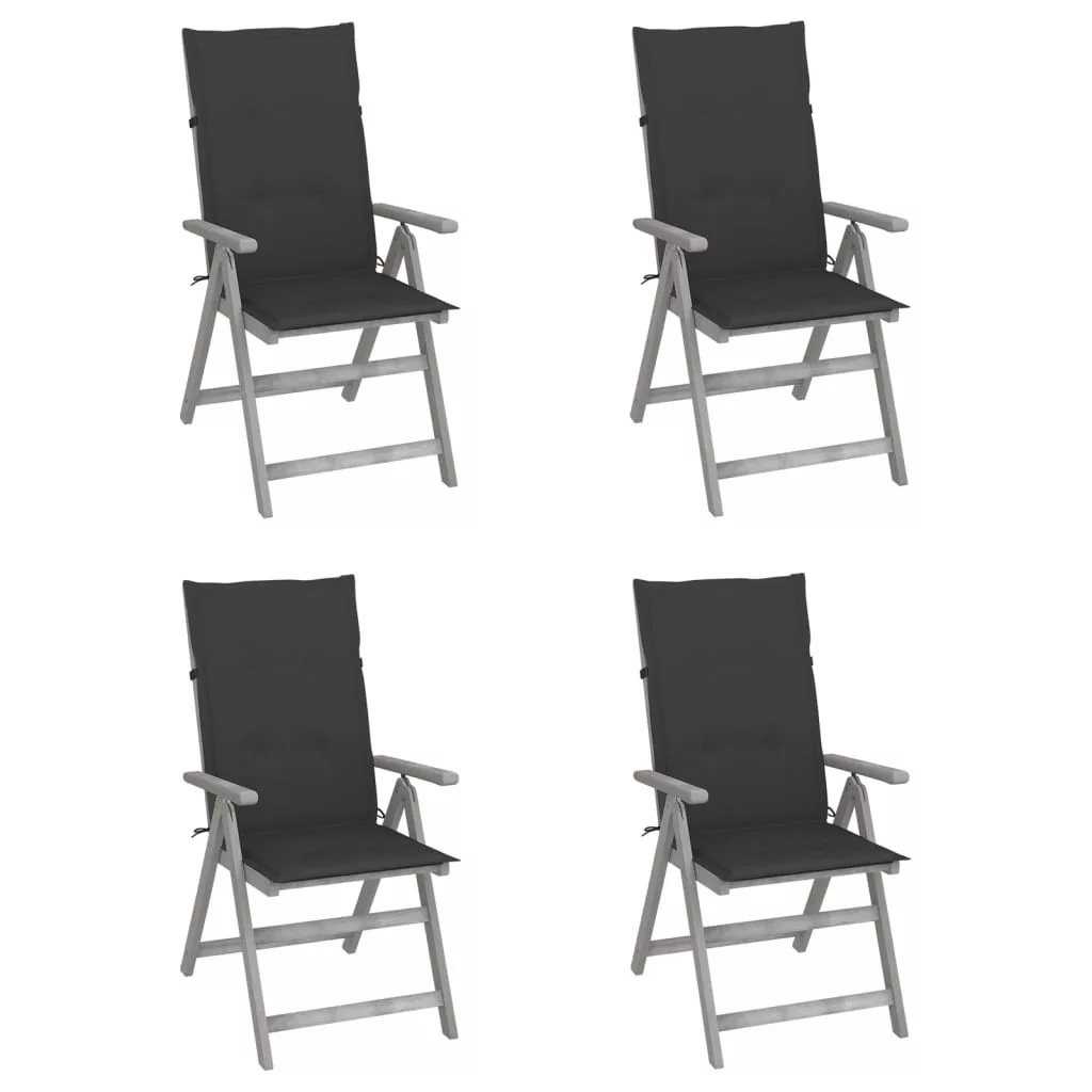 Ezek a karosszékek tömör akácfából készültek, amely egy sűrű erezetű keményfa, valamint szürke felületet kapott. Ezek a gyönyörű kialakítású kültéri székek stabilak, tartósak és figyelemfelkeltőek. A szék háttámlája 5-féle pozícióba dönthető, így mindig a legkényelmesebb helyzetbe állíthatja, saját igényeinek megfelelően. Sőt, a mellékelt párnák további kényelmet nyújtanak pihenés vagy étkezés közben. A párnák egy-egy elasztikus pánttal és két-két kötözővel lettek ellátva, melyekkel a székekhez rögzíthetőek. Ezek a székek kiválóan alkalmasak a családjával töltött étkezésekhez vagy egyszerűen csak élvezni a jó időt a kertben.