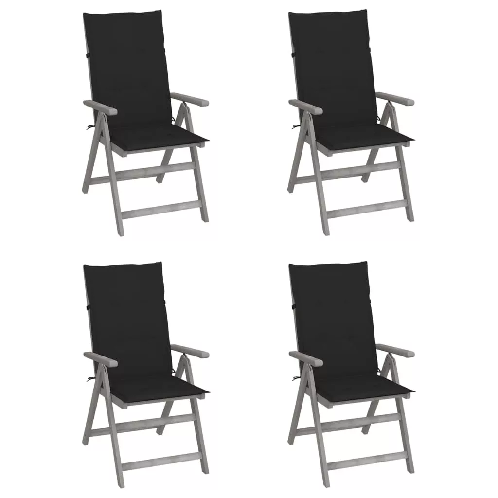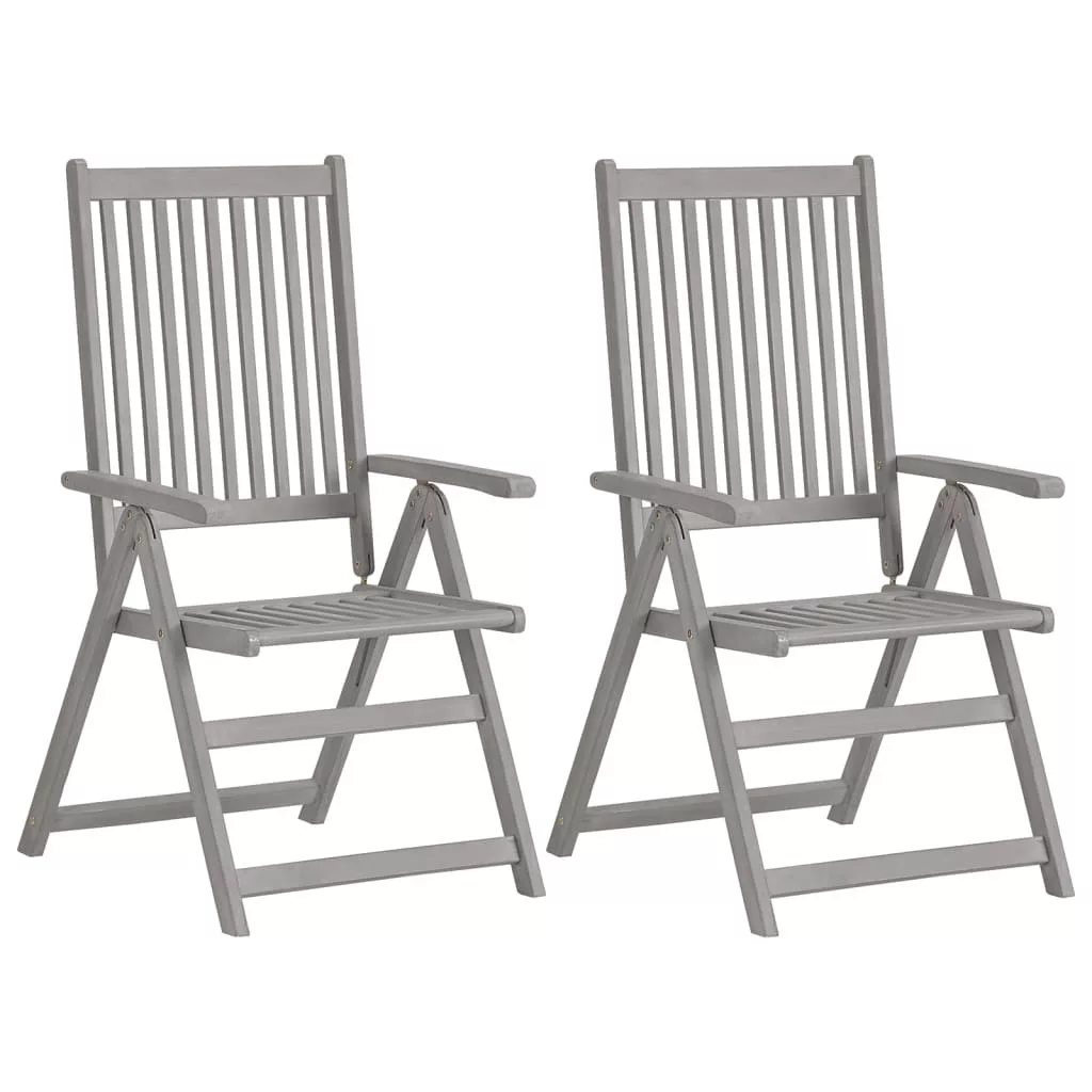 Ezek a karosszékek tömör akácfából készültek, amely egy sűrű erezetű keményfa, valamint szürke felületet kapott. Ezek a gyönyörű kialakítású kültéri székek stabilak, tartósak és figyelemfelkeltőek. A szék háttámlája 5-féle pozícióba dönthető, így mindig a legkényelmesebb helyzetbe állíthatja, saját igényeinek megfelelően. Sőt, a mellékelt párnák további kényelmet nyújtanak pihenés vagy étkezés közben. A párnák egy-egy elasztikus pánttal és két-két kötözővel lettek ellátva, melyekkel a székekhez rögzíthetőek. Ezek a székek kiválóan alkalmasak a családjával töltött étkezésekhez vagy egyszerűen csak élvezni a jó időt a kertben.