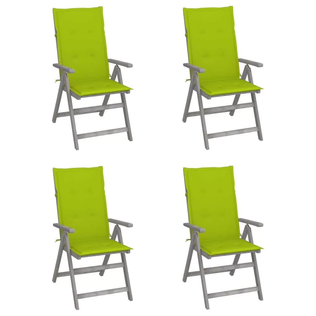 Ezek a karosszékek tömör akácfából készültek, amely egy sűrű erezetű keményfa, valamint szürke felületet kapott. Ezek a gyönyörű kialakítású kültéri székek stabilak, tartósak és figyelemfelkeltőek. A szék háttámlája 5-féle pozícióba dönthető, így mindig a legkényelmesebb helyzetbe állíthatja, saját igényeinek megfelelően. Sőt, a mellékelt párnák további kényelmet nyújtanak pihenés vagy étkezés közben. A párnák egy-egy elasztikus pánttal és két-két kötözővel lettek ellátva, melyekkel a székekhez rögzíthetőek. Ezek a székek kiválóan alkalmasak a családjával töltött étkezésekhez vagy egyszerűen csak élvezni a jó időt a kertben.