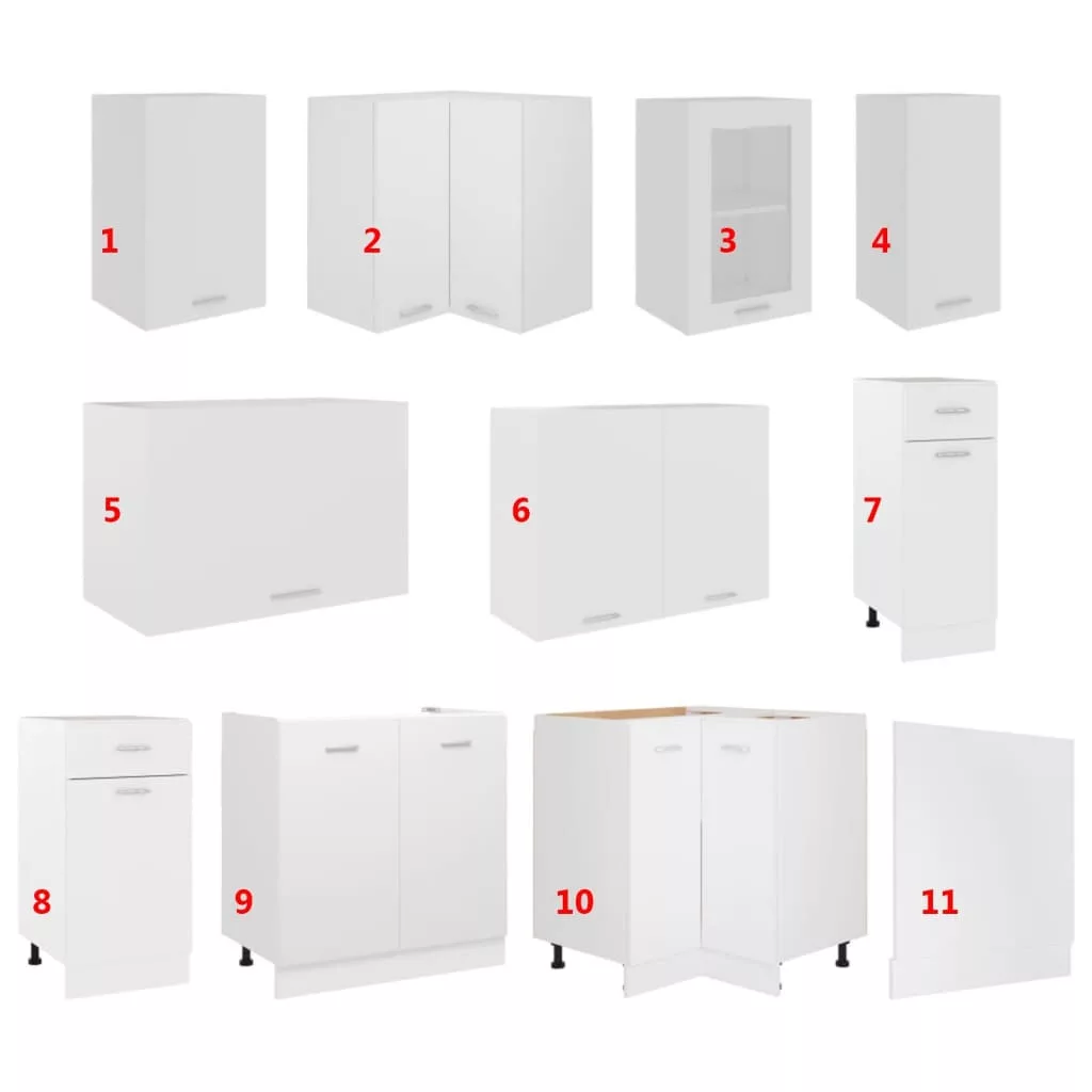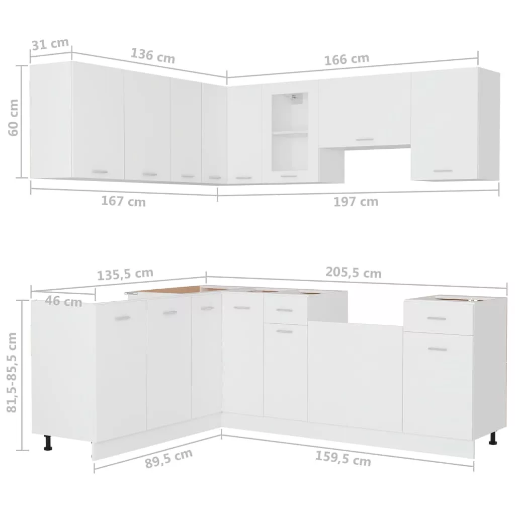 vidaXL Lyon 11 részes fehér forgácslap konyhai szekrénygarnitúra