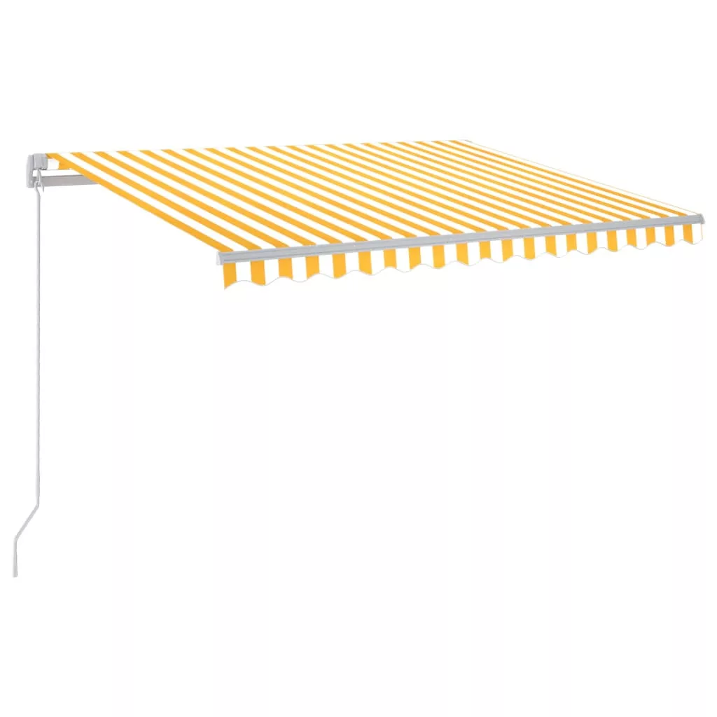 Ez a kültéri napellenző rozsdaálló, porszórt alumínium vázzal készült, így könnyű, mégis erős. A napellenző szövete nagy sűrűségű poliészterből készült poliuretán bevonattal, amely UV- és vízálló. Ezenkívül a dőlésszög és a magasság az Ön egyedi igényeinek megfelelően állítható. A napellenző a hosszú hajtókarral zökkenőmentesen nyitható és visszahúzható. Sőt, a napenergiával működő LED-lámpák energiatakarékos világítást biztosítanak éjszaka.