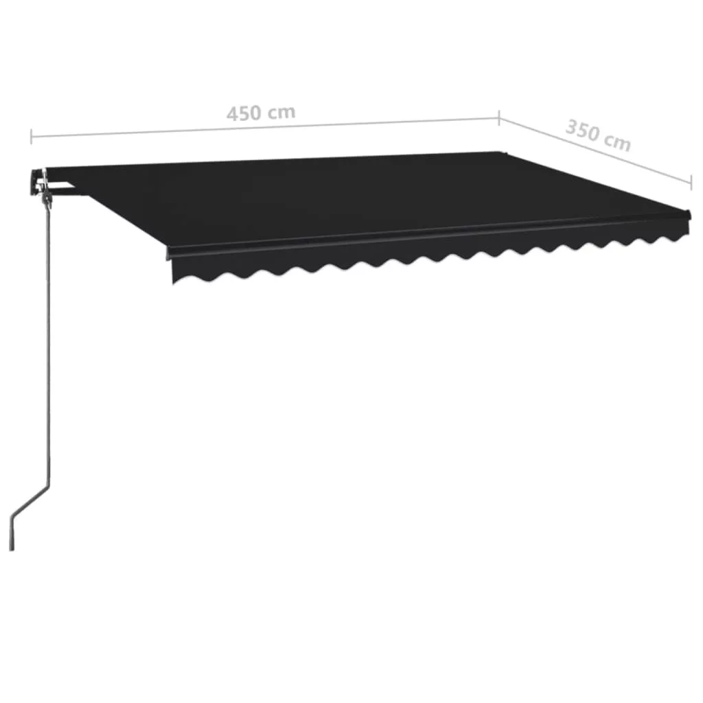 Ez a kültéri napellenző rozsdaálló, porszórt alumínium vázzal készült, így könnyű, mégis erős. A napellenző szövete nagy sűrűségű poliészterből készült poliuretán bevonattal, amely UV- és vízálló. Ezenkívül a dőlésszög és a magasság az Ön egyedi igényeinek megfelelően állítható. A napellenző a hosszú hajtókarral zökkenőmentesen nyitható és visszahúzható. Sőt, a napenergiával működő LED-lámpák energiatakarékos világítást biztosítanak éjszaka.