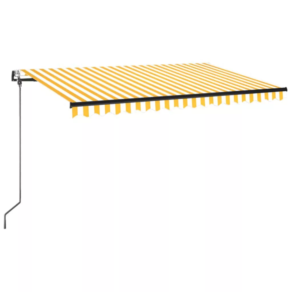 A rozsdaálló, porszórt alumíniumváznak köszönhetően a kültéri napellenző könnyű, mégis erős. Az udvari napellenző szövetanyaga nagy sűrűségű, PU-bevonatú poliészterből készült, mely UV- és vízálló. A szög és a magasság az Ön igényei szerint állítható. A napellenző a mellékelt távirányítóval egyszerűen nyitható és visszahúzható, valamint a hosszú hajtókarral is zökkenőmentesen használható. Ráadásul a szélérzékelő szeles napokon automatikusan behúzza a napellenzőt, a LED-lámpák pedig éjjel energiatakarékos világítást nyújtanak.
