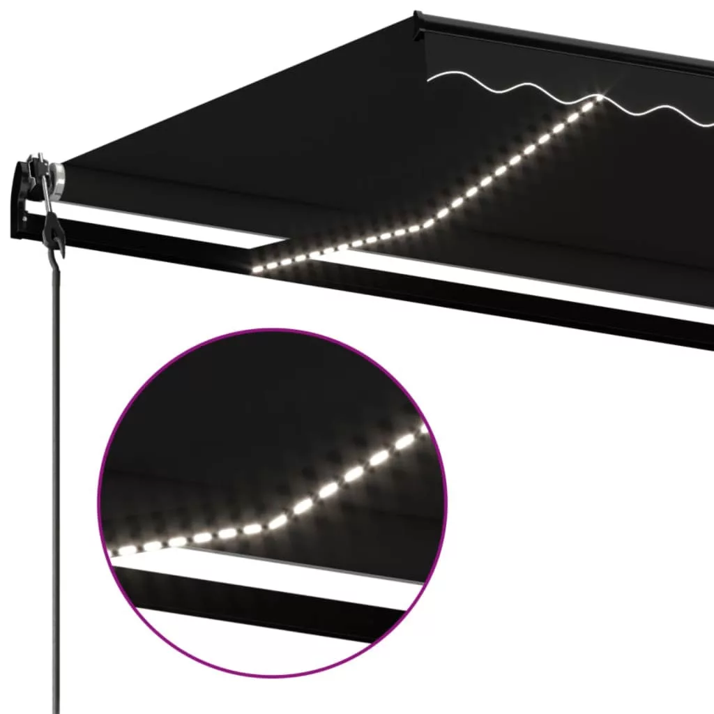 A rozsdaálló, porszórt alumíniumváznak köszönhetően a kültéri napellenző könnyű, mégis erős. Az udvari napellenző szövetanyaga nagy sűrűségű, PU-bevonatú poliészterből készült, mely UV- és vízálló. A szög és a magasság az Ön igényei szerint állítható. A napellenző a mellékelt távirányítóval egyszerűen nyitható és visszahúzható, valamint a hosszú hajtókarral is zökkenőmentesen használható. Ráadásul a szélérzékelő szeles napokon automatikusan behúzza a napellenzőt, a LED-lámpák pedig éjjel energiatakarékos világítást nyújtanak.