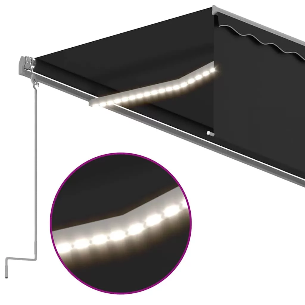 Ez a kültéri napellenző rozsdaálló, porszórt alumínium vázzal készült, így könnyű, mégis erős. A napellenző szövete nagy sűrűségű poliészterből készült poliuretán bevonattal, amely UV- és vízálló. Ezenkívül a dőlésszög és a magasság az Ön egyedi igényeinek megfelelően állítható. A napellenző a hosszú hajtókarral zökkenőmentesen nyitható és visszahúzható. Sőt, a napenergiával működő LED-lámpák energiatakarékos világítást biztosítanak éjszaka. A redőny megvédi Önt az UV-sugárzástól, és privát szférát biztosít.