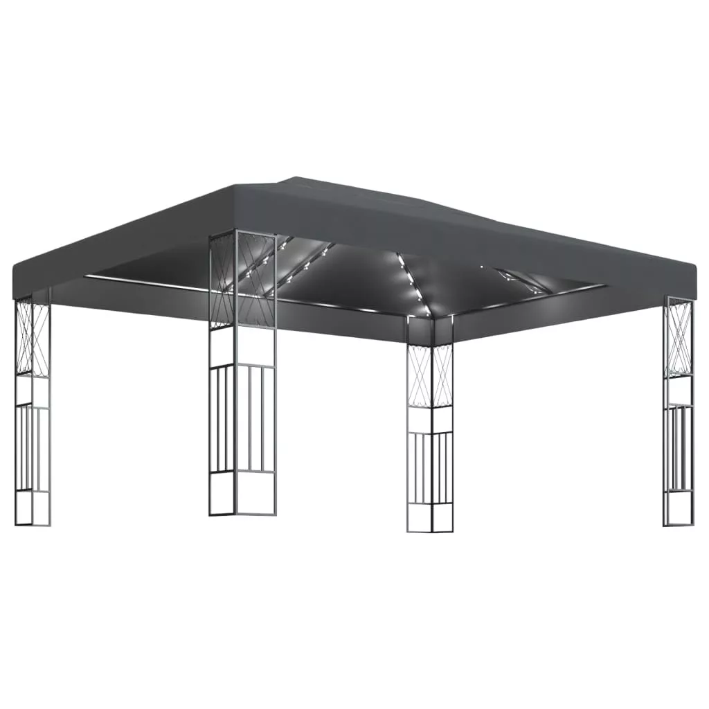 A szellőzős ponyva megakadályozza, hogy a nap vagy az eső elrontsa a mulatságot családi összejöveteleken, grillezéskor, délutáni piknikeken vagy születésnapi partikon. A pavilon masszív acélszerkezettel, négyzet alakú díszítésekkel és poliészter tetővel rendelkezik. A pavilon könnyen az acélvázhoz rögzíthető. Emellett a fényfüzér kellemes hangulatot teremt a kertben, amikor lemegy a nap. A fény nem szennyezi a környezetet, mivel napenergia tölti fel a nap folyamán.