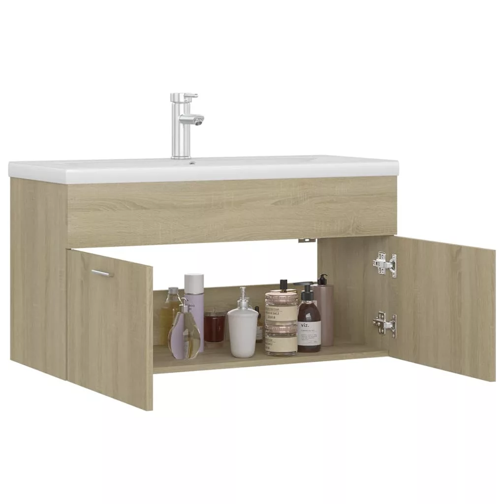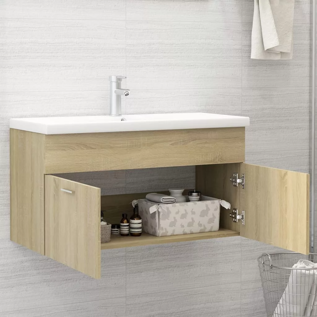 A szekrény szerelt fából készült, így masszív és stabil. A tárolószekrény 1 rekesszel és 2 ajtóval rendelkezik, így bőséges helyet kínál a tárgyak tárolására. Tökéletesen elfér a mosdókagylója alatt, és igen kényelmessé teszi a fürdőszobai tárolást. A kerámiából készült mosdókagyló nemcsak a mindennapi használatra szolgáló edényként, hanem a lakótér díszeként is szolgálhat. Trendteremtő és kortárs kialakításának köszönhetően ez a mosdókagyló minden bizonnyal bármilyen dekorációhoz illik. Egy túlfolyóval is fel lett szerelve, hogy a víz kifolyhasson, ha túlságosan megtelt. Mázas felülete modern, mégis elegáns dizájnt kölcsönöz magának. Ezenkívül a szekrény és a mosdókagyló könnyen tisztítható egy nedves ruhával.