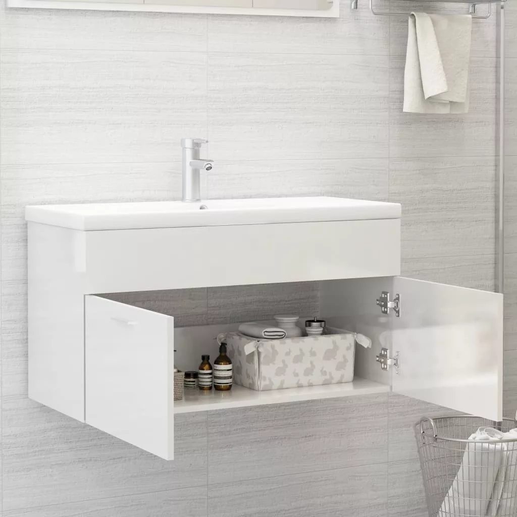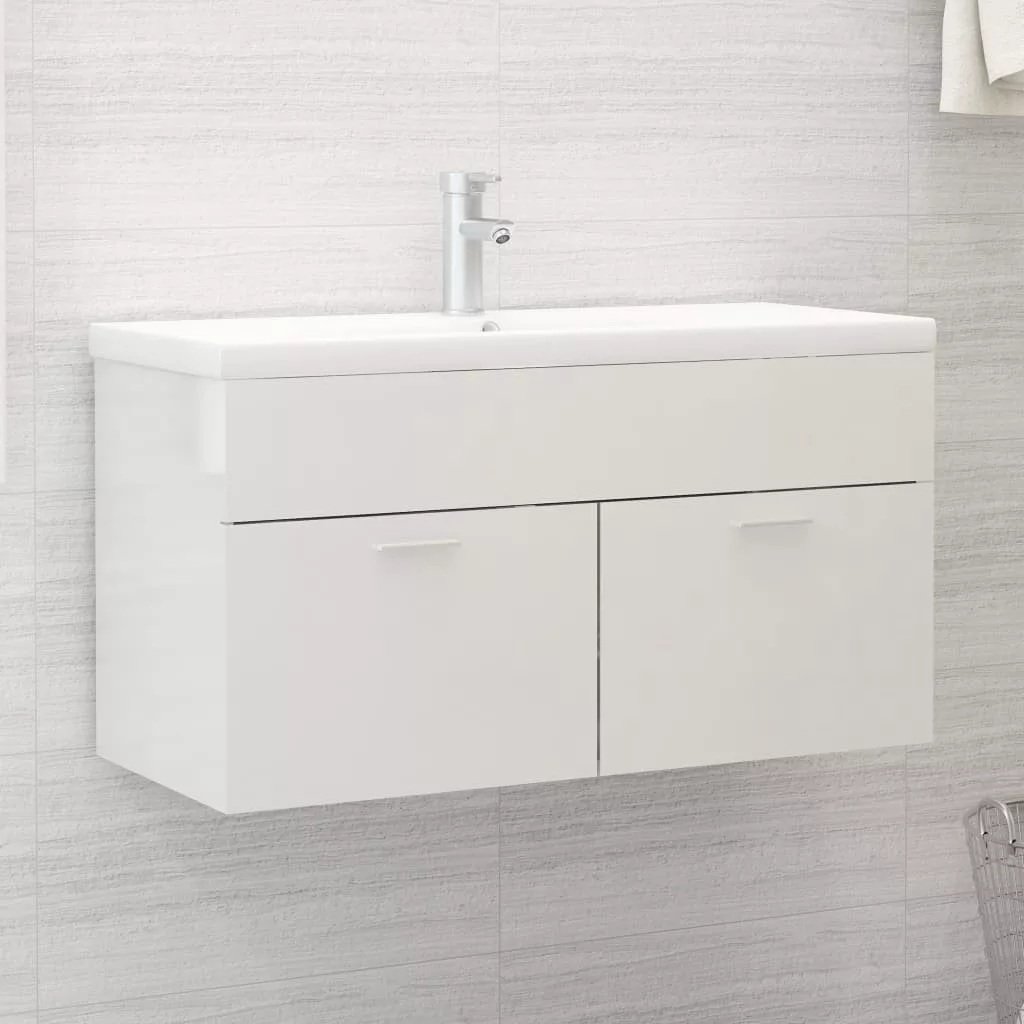 Ez a beépített mosdókagylóval ellátott mosdószekrény feltűnő és tiszta megjelenésével tökéletesen illik fürdőszobájába vagy mosdójába.