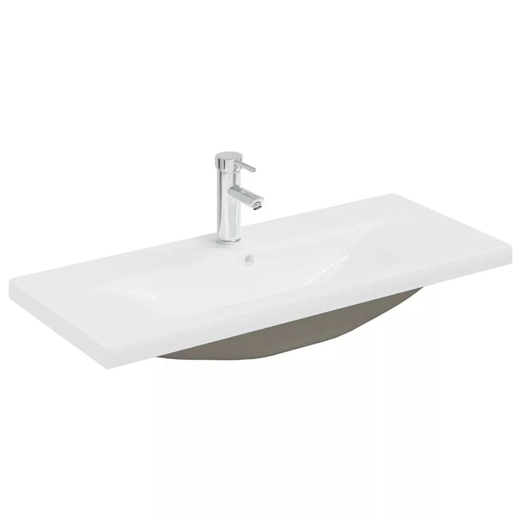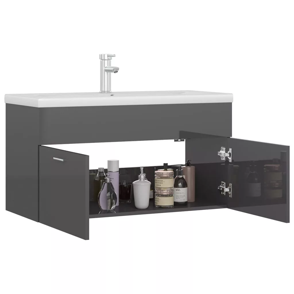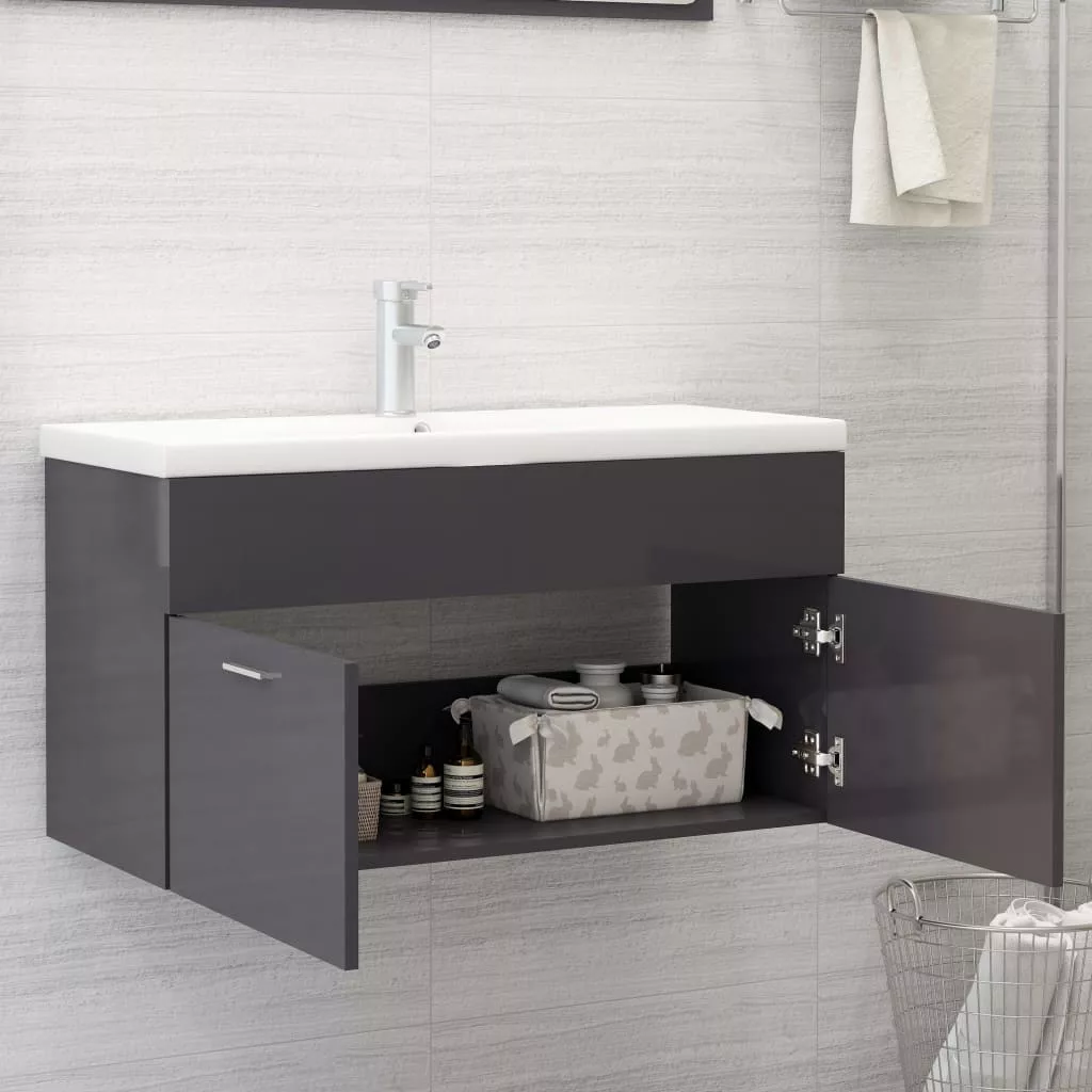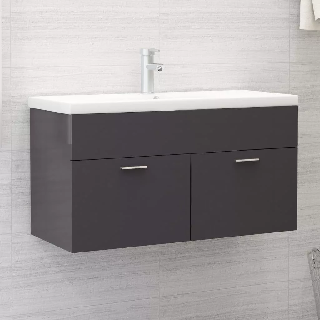 Ez a beépített mosdókagylóval ellátott mosdószekrény feltűnő és tiszta megjelenésével tökéletesen illik fürdőszobájába vagy mosdójába.