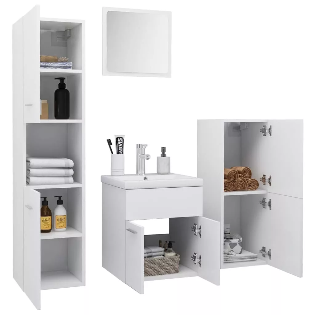 A bútorszett mosogatószekrényből, alacsony szekrényből, magas szekrényből, beépített mosdókagylóból és tükörből áll. Az elegáns mosdószekrénynek 1 rekesze van, és a teteje ideális a mosdó elhelyezéséhez. A magas szekrény összesen 5 rekesszel és 2 ajtóval, valamint az alacsony szekrény 2 rekesszel rendelkezik. Ez a 2 szekrény különféle tárolási lehetőséget és extra helyet kínál dolgai tárolására a fürdőszobában. A kerámiából készült mosdókagyló több mint egy praktikus, mindennapi használatra alkalmas mosdó, élettere díszítőelemeként is szolgál. Divatos és kortárs dizájnjának köszönhetően ez a mosdó bármilyen dekorációhoz illeni fog. Túlfolyóval lett ellátva a víz kifolyásának megakadályozása érdekében. A tükör úgyszintén kiváló megjelenést kölcsönöz a lakberendezésnek. Ez a fürdőszobai szett könnyen tisztítható nedves ruhával.