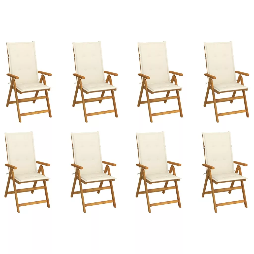 Az összecsukható szék tömör akácfából, egy trópusi keményfából készült, így stabil és tartós. Az olajjal kezelt felület nedves ruhával könnyen tisztítható. Az étkezőszék 5 helyzetbe állítható, optimális kényelmet biztosítva Önnek. Használaton kívül a helytakarékosság érdekében összecsukható. A mellékelt párnák extra kényelmet nyújtanak.