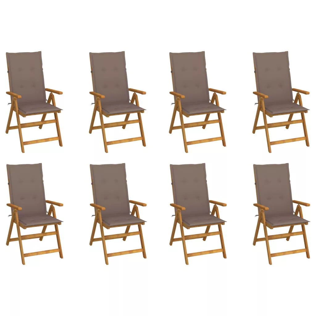 Az összecsukható szék tömör akácfából, egy trópusi keményfából készült, így stabil és tartós. Az olajjal kezelt felület nedves ruhával könnyen tisztítható. Az étkezőszék 5 helyzetbe állítható, optimális kényelmet biztosítva Önnek. Használaton kívül a helytakarékosság érdekében összecsukható. A mellékelt párnák extra kényelmet nyújtanak.
