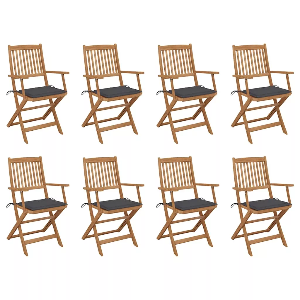 Az étkezőszékek minőségi akácfából, egy trópusi keményfából készültek, mely időjárásálló és rendkívül strapabíró, éveken keresztül használható. Olajjal kezelt felületének köszönhetően egy nedves ronggyal könnyedén tisztítható. A székek használaton kívül a helytakarékosság érdekében összecsukhatóak. Ráadásul a mellékelt párnák extra kényelmet nyújtanak. Minden párna 2 kötözővel van ellátva, melyekkel szorosan a székekhez rögzíthetőek.